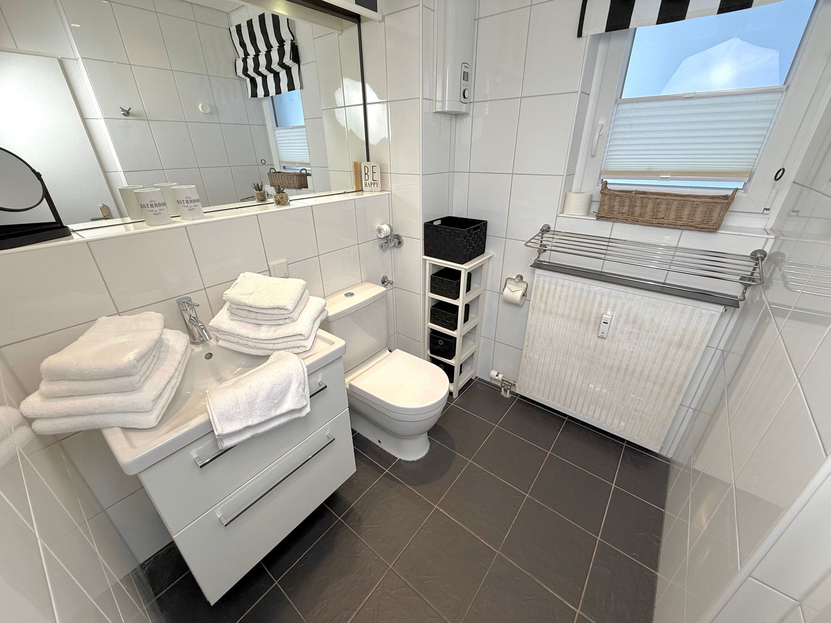 Das moderne und neue Duschbad/WC mit Fenster ist perfekt für einen Start in einen entspannten Urlaubstag.