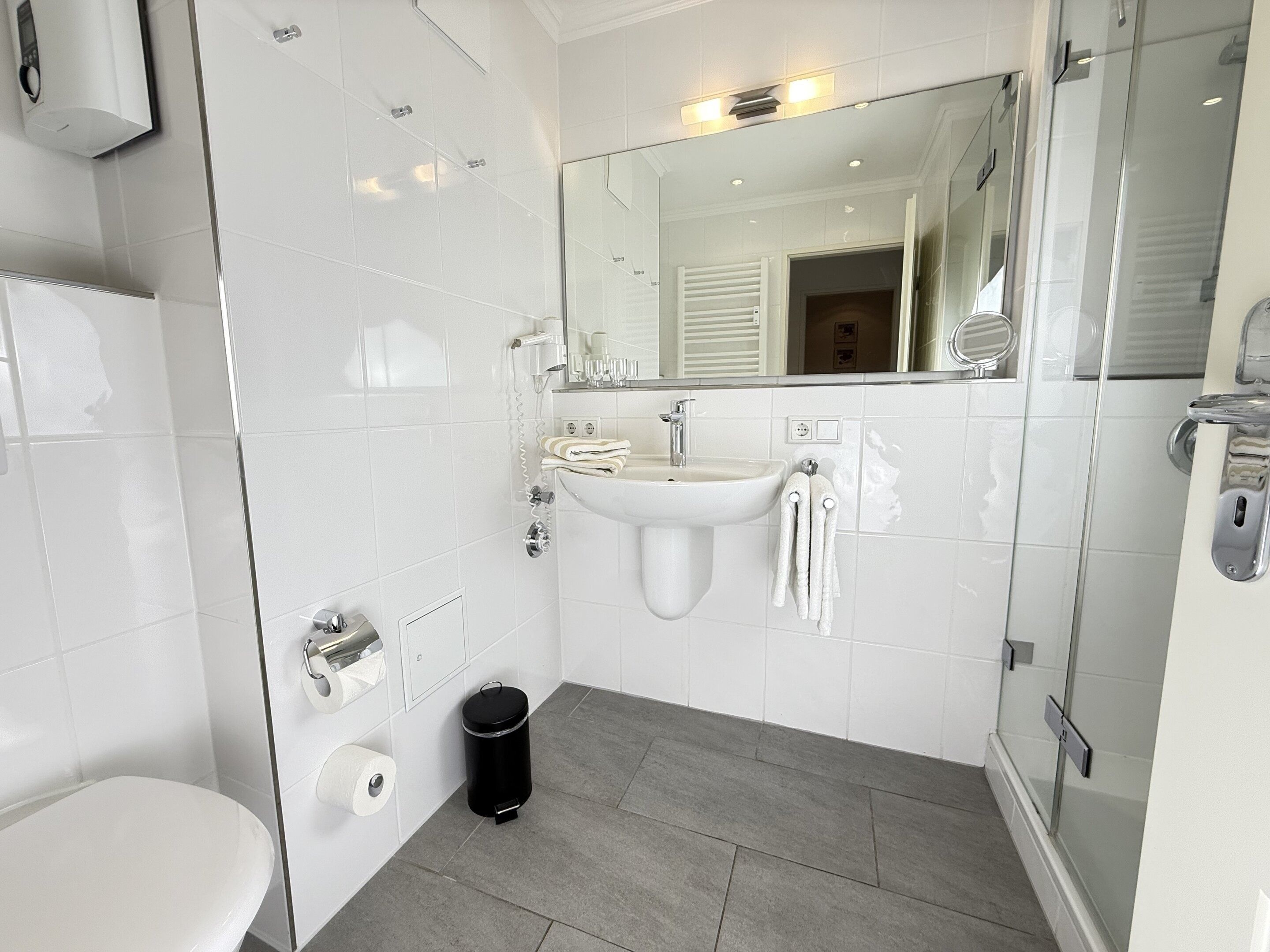 Im Bad befinden sich eine Dusche, ein WC, ein Waschtisch, ein Handtuchtrockner und ein Fön. Haustiere dürfen nicht mitgebracht werden.