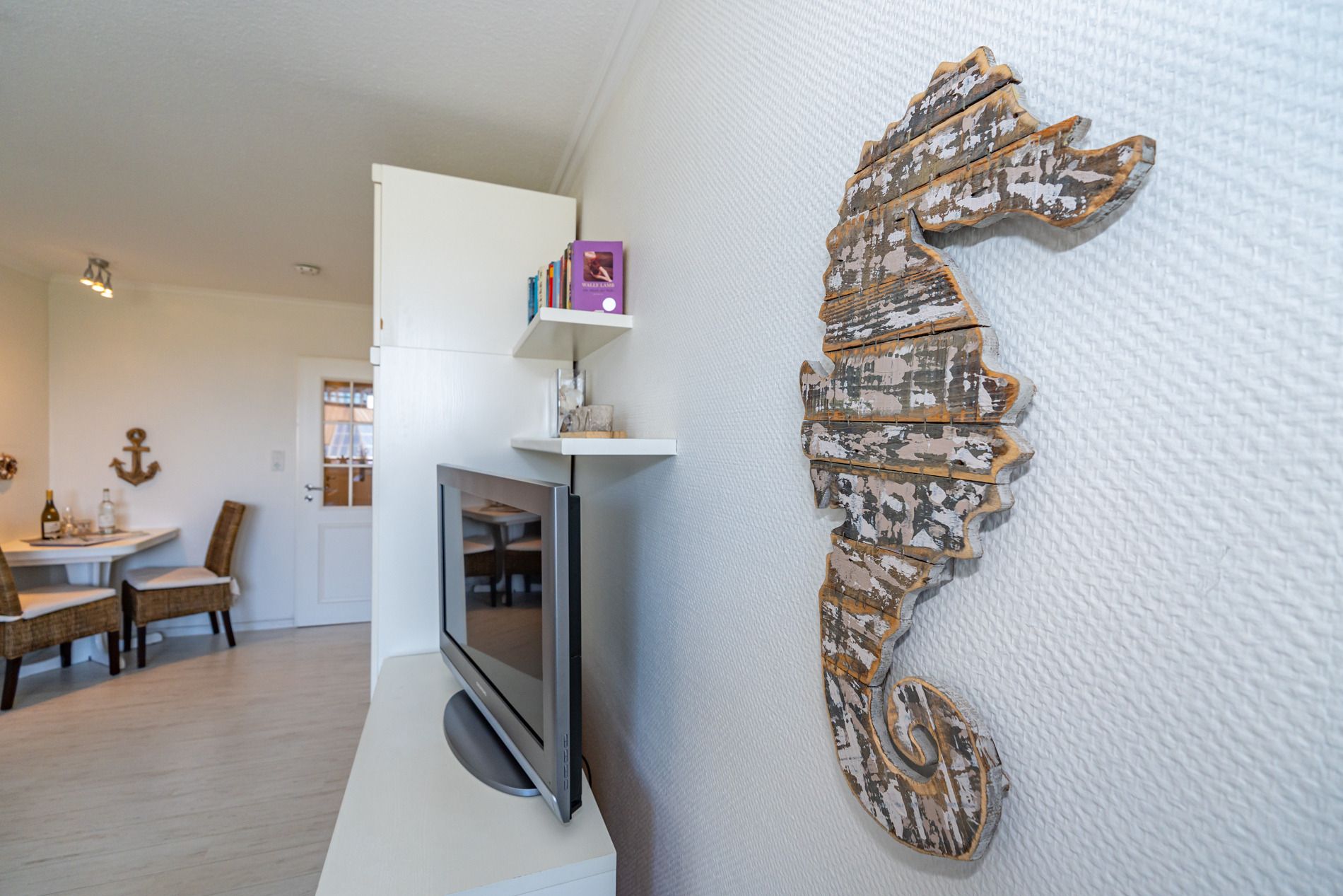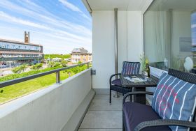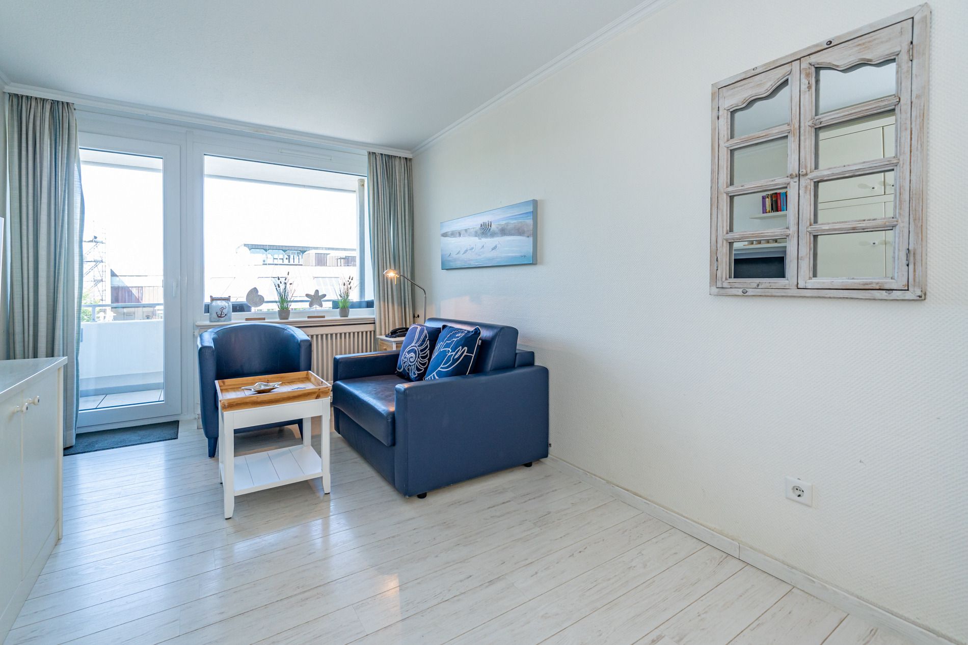 1-Zimmer-Nichtraucher-Ferienwohnung (ca. 25 qm) in der 1. Etage zur Seeseite mit Westloggia (Nachmittagssonne, mit Balkonmöbeln und Auflagen) für max. 2 Personen.