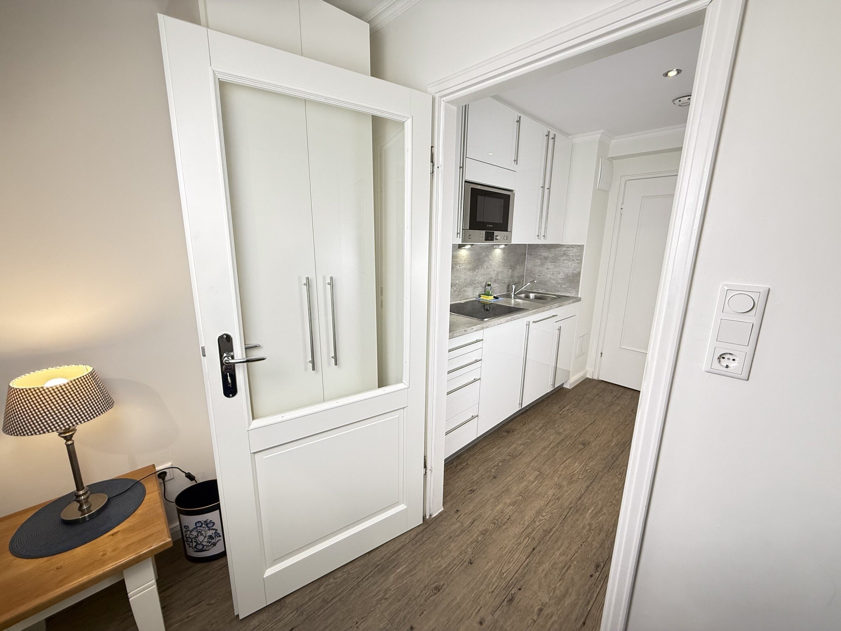 Vom Vorflur mit Garderobe und neuer Küchenzeile gelangt man in das kombinierte Wohn-/Schlafzimmer (mit Austritt zum Balkon) und in das neue Duschbad/WC.