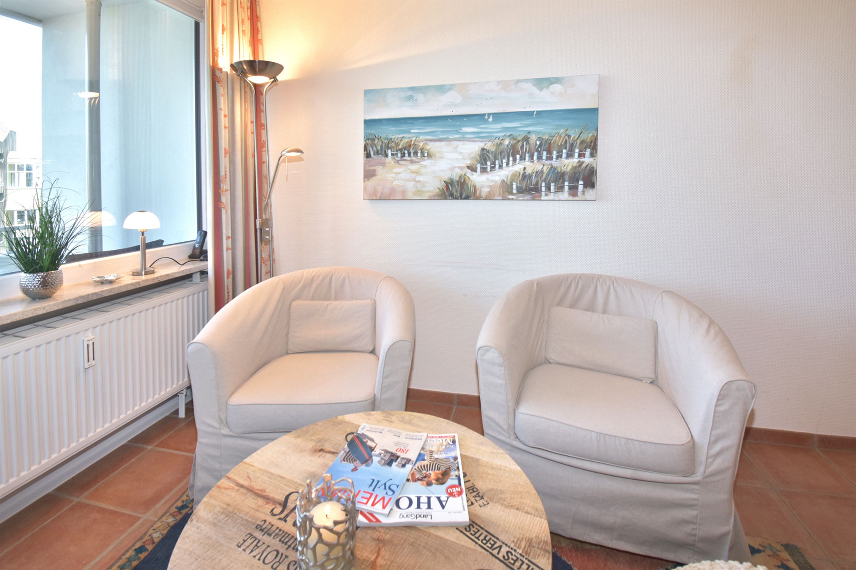 Die liebevoll ausgestattete 1-Zimmer-Ferienwohnung, Nichtraucher, ca. 25 qm, in der 2. Etage mit Westloggia (Nachmittagssonne, mit Balkonmöbeln und Auflagen) ist mit 1-2 Personen belegbar.