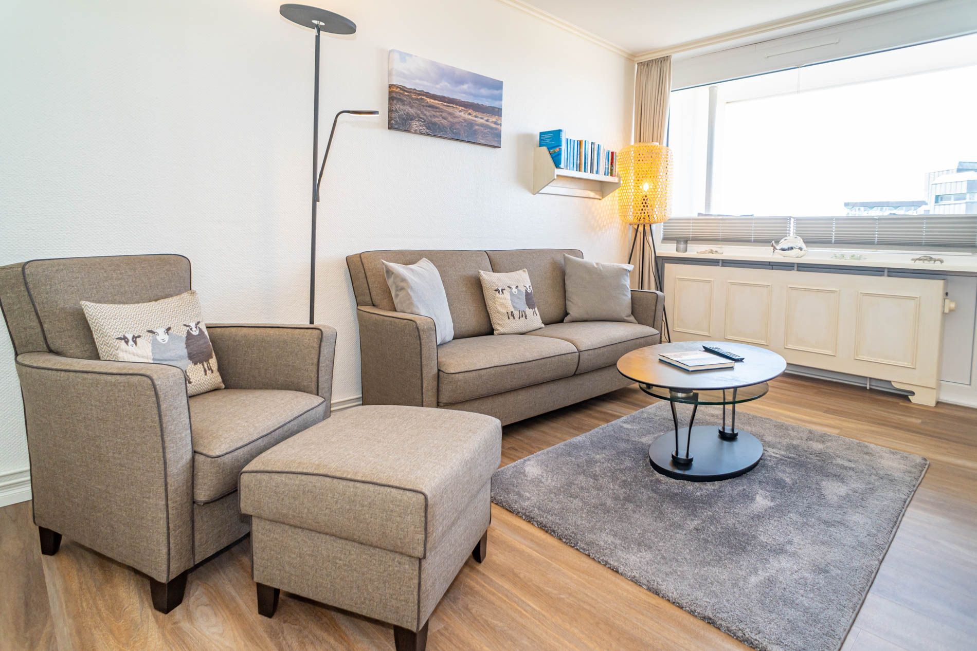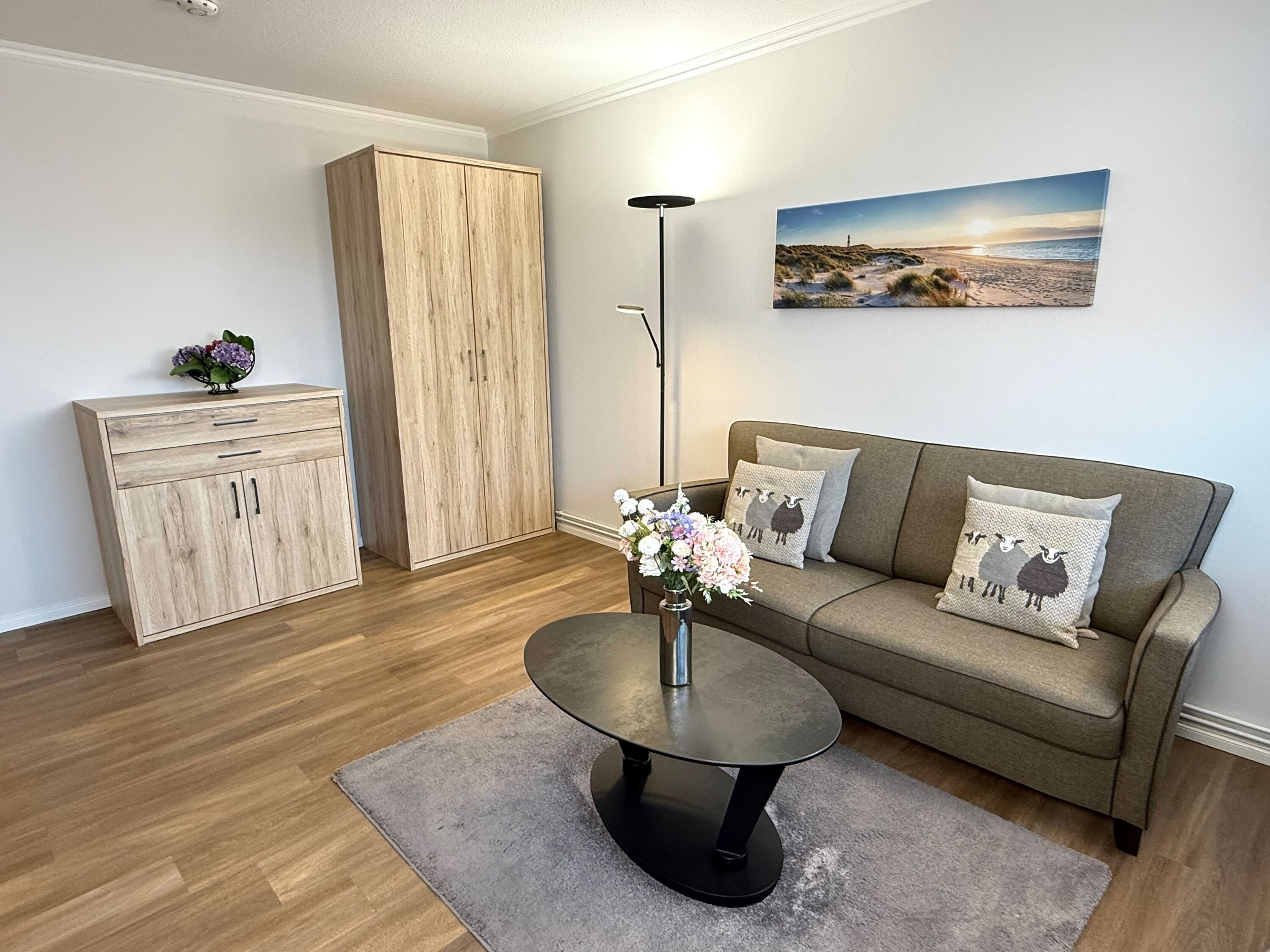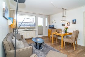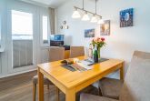 Gemütliche, schön eingerichtete 1,5-Zimmer-Nichtraucher-Ferienwohnung (ca. 50 qm) in der 2. Etage zur Seeseite mit Westloggia (Nachmittagssonne, mit Balkonmöbeln und Auflagen) für max. 2 Personen.