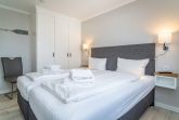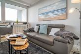 Gut eingerichtete, komplett mit Fliesen und Venyl-Laminat ausgestattete 2-Zimmer-Nichtraucher-Ferienwohnung, ca. 51 qm, in der 5. Etage zur Seeseite mit herrlichem Meerblick und Westloggia (Nachmittags- und Abendsonne mit Balkonmöbeln und Auflagen) für max. 4 Personen.