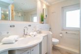 Das Badezimmer ist mit geräumiger Dusche, Waschtisch, Handtuchtrockner, Fön und Fenster ausgestattet.