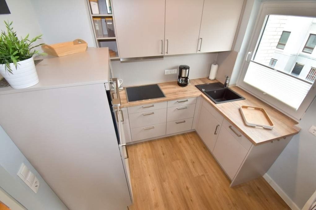 Diese moderne City-Wohnung in der 1. Etage überzeugt mit einer hochwertigen Sanierung, geschmackvoller Einrichtung und einem komplett neu verlegten Designer-Holzfußboden. Ideal für Gäste, die Komfort und Stil im Herzen der Stadt suchen.