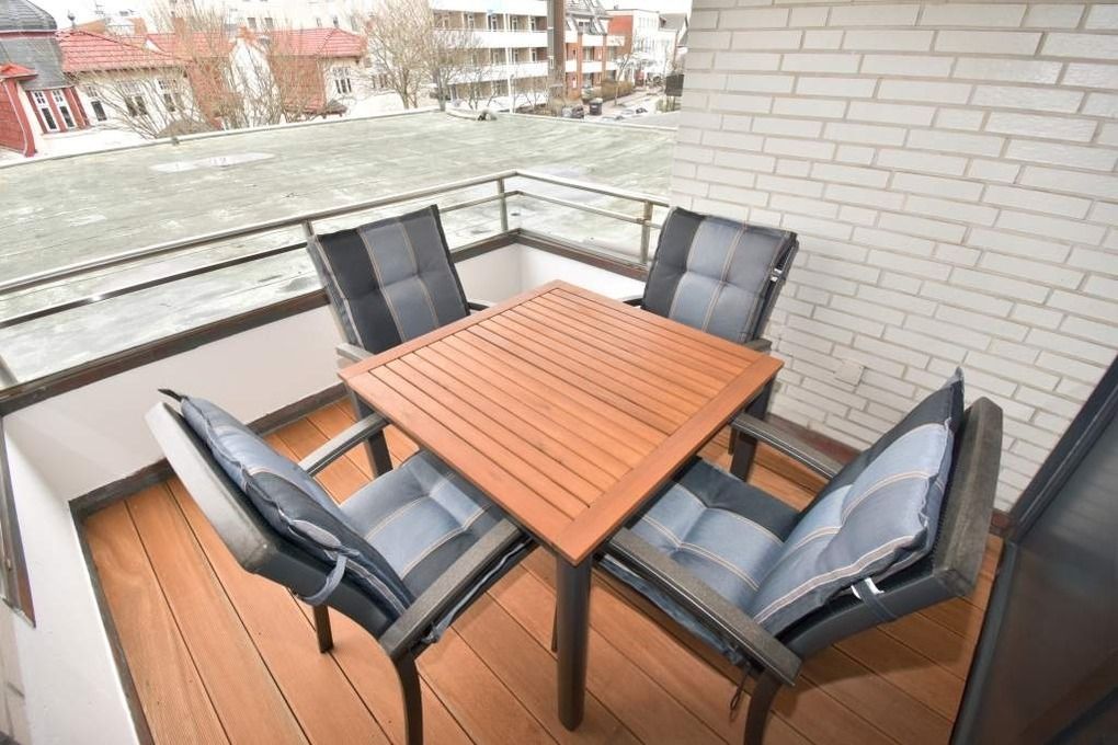 Der großzügige Balkon lädt zum Verweilen ein – ideal, um den Tag entspannt ausklingen zu lassen.