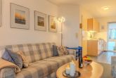 Das Nichtraucherappartement mit Seebrückenblick befindet sich innerhalb der Ferienanlage 'Seeblick' im 1. Obergeschoss des Gästehauses aus dem Jahr 1999. Es verfügt über ein Badezimmer mit Dusche und WC, einen Wohnraum mit Fernseher, Radio und offener Küche (ausgestattet mit Kaffeemaschine, Kühlschrank etc.), sowie einen möblierten Balkon mit Blick auf die Seebrücke. Zudem gibt es ein Schlafzimmer. Die Wohnung ist zentralbeheizt und geeignet für 2-3 Personen (mit einem Doppelbett im Schlafzimmer und einer Schlafcouch im Wohnraum). Bettwäsche und Handtücher sind im Buchungspreis enthalten.