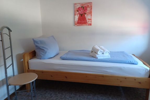 Ein Einzelbettzimmer und ein separater Eingang (linke Tür) sind vorhanden.