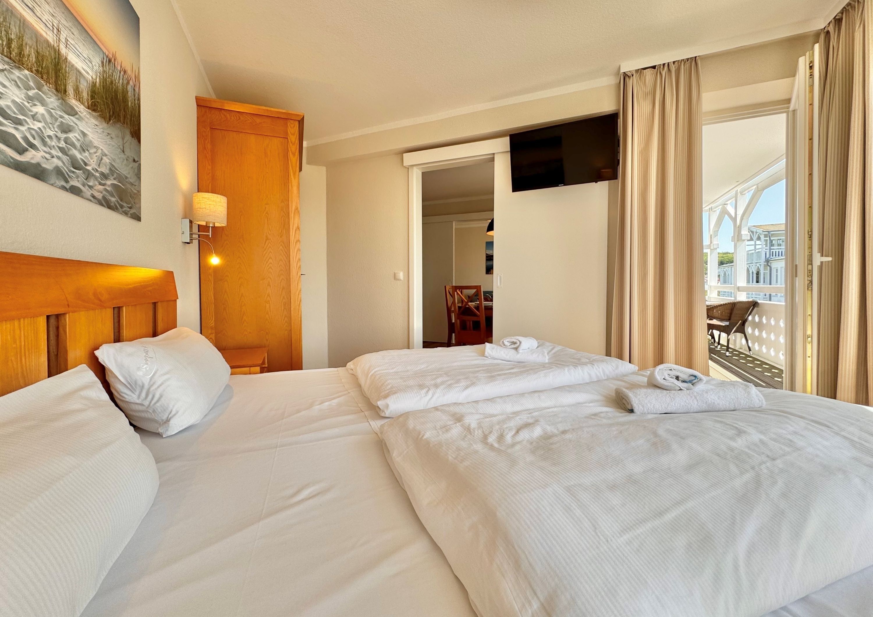 Die frisch und aufwändig renovierte Ferienwohnung 255 befindet sich im Haus Seedorf im beliebten Seepark Sellin. Auf 52 m² Wohnfläche bietet sie Platz für bis zu 4 Personen und überzeugt durch modernen Komfort und eine hochwertige Ausstattung. Die Wohnung liegt in der 2. Etage und ist bequem zu erreichen.