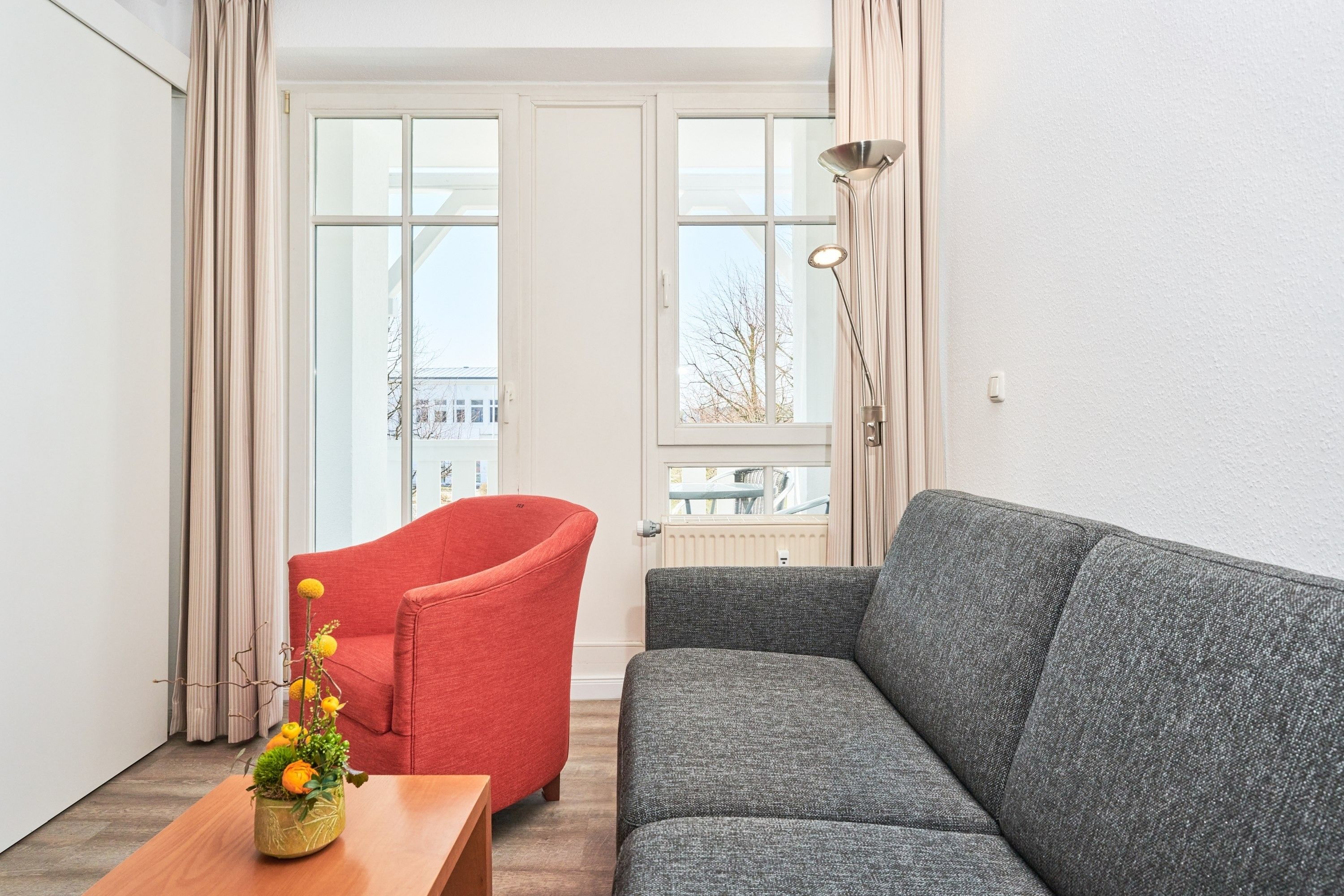 Nach einem erlebnisreichen Urlaubstag können Sie auf dem Balkon in Südwestlage Platz nehmen. Der Ausblick und die Sitzgruppe sorgen hier für ein wunderbares Urlaubsgefühl. Im Nichtraucher-Apartment sind Haustiere nicht gestattet.