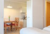 Die Ausstattung der Wohnung umfasst unter anderem einen Flachbildfernseher, eine Kaffeemaschine (mit Filter), sowie Bettwäsche, die bereits im Preis inklusive ist. Ein Balkon lädt zum Entspannen und Genießen der frischen Seeluft ein. Die offene Wohnküche bietet die Möglichkeit, gemeinsam zu kochen und zu essen. Für Fahrräder gibt es einen Keller zur sicheren Aufbewahrung. Ein WLAN Anschluss und ein Fernseher mit Sky-Sendern sorgen für Unterhaltung. Das Badezimmer verfügt über eine Badewanne und ein Tiefgaragenstellplatz ist ebenfalls vorhanden. Auf Wunsch kann ein Brötchenservice in Anspruch genommen werden.
