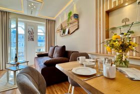 Ein besonderes Plus ist der Balkon in Südostlage mit einer gemütlichen Sitzgruppe – hier können Sie Ihr Frühstück in der Morgensonne genießen oder den Tag bei einem Glas Wein ausklingen lassen. Die Ferienwohnung ist ein Nichtraucher-Apartment und haustierfrei.