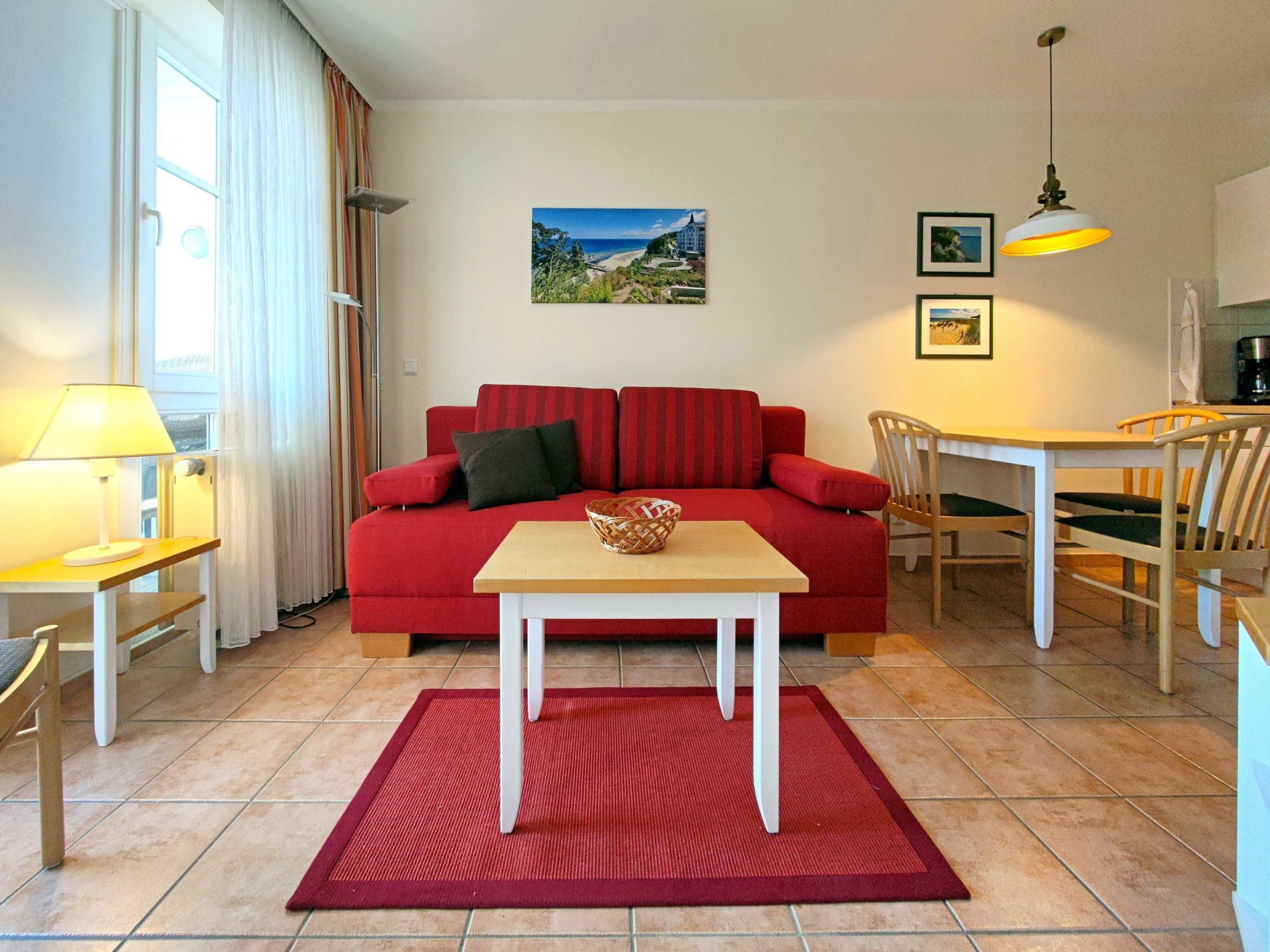 Die Ferienwohnung umfasst 32 m² Wohnfläche und verfügt über ein Schlafzimmer. Sie befindet sich im 2. Obergeschoss der Ferienanlage Seepark Sellin und ist bequem mit dem Aufzug erreichbar. In einer Entfernung von 900 m locken die Ostsee und der Strand sowie der Selliner See. Einkaufsmöglichkeiten und ein Bäcker sind innerhalb der Ferienanlage zu Fuß gut erreichbar.