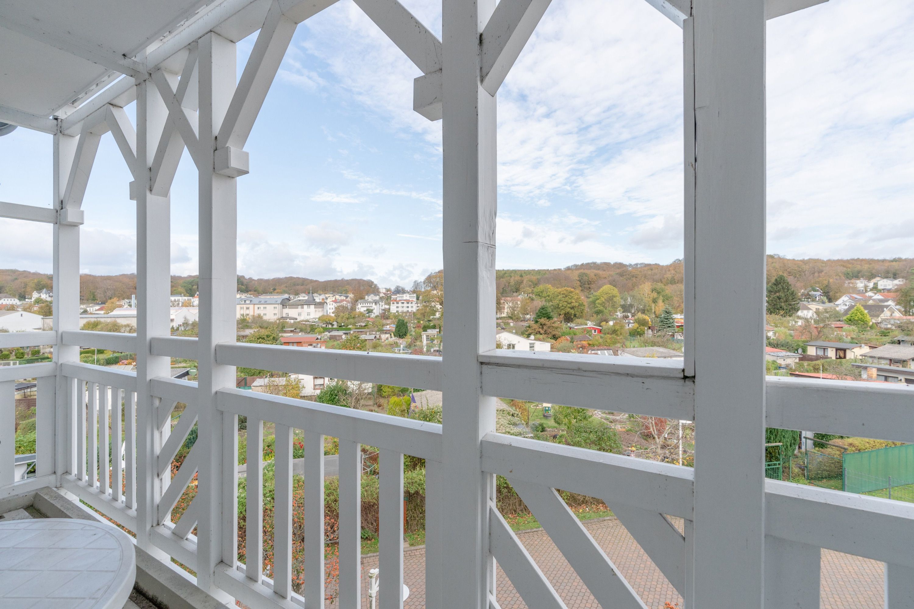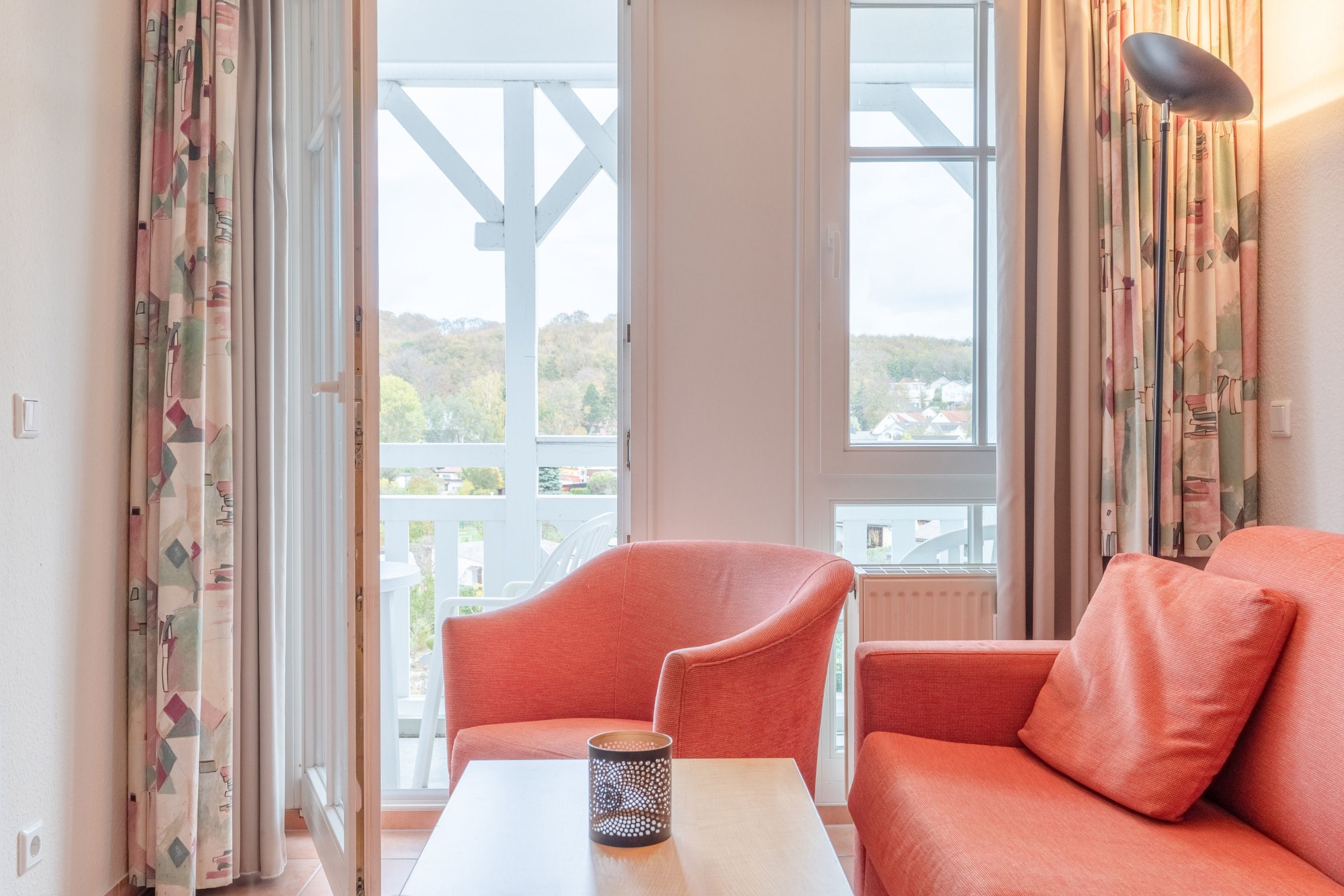 Auf dem Balkon in Nordostlage können Sie den Ausblick genießen und auf der Sitzgruppe entspannen. Die Wohnung ist ein Nichtraucher-Apartment und es sind keine Haustiere erlaubt.