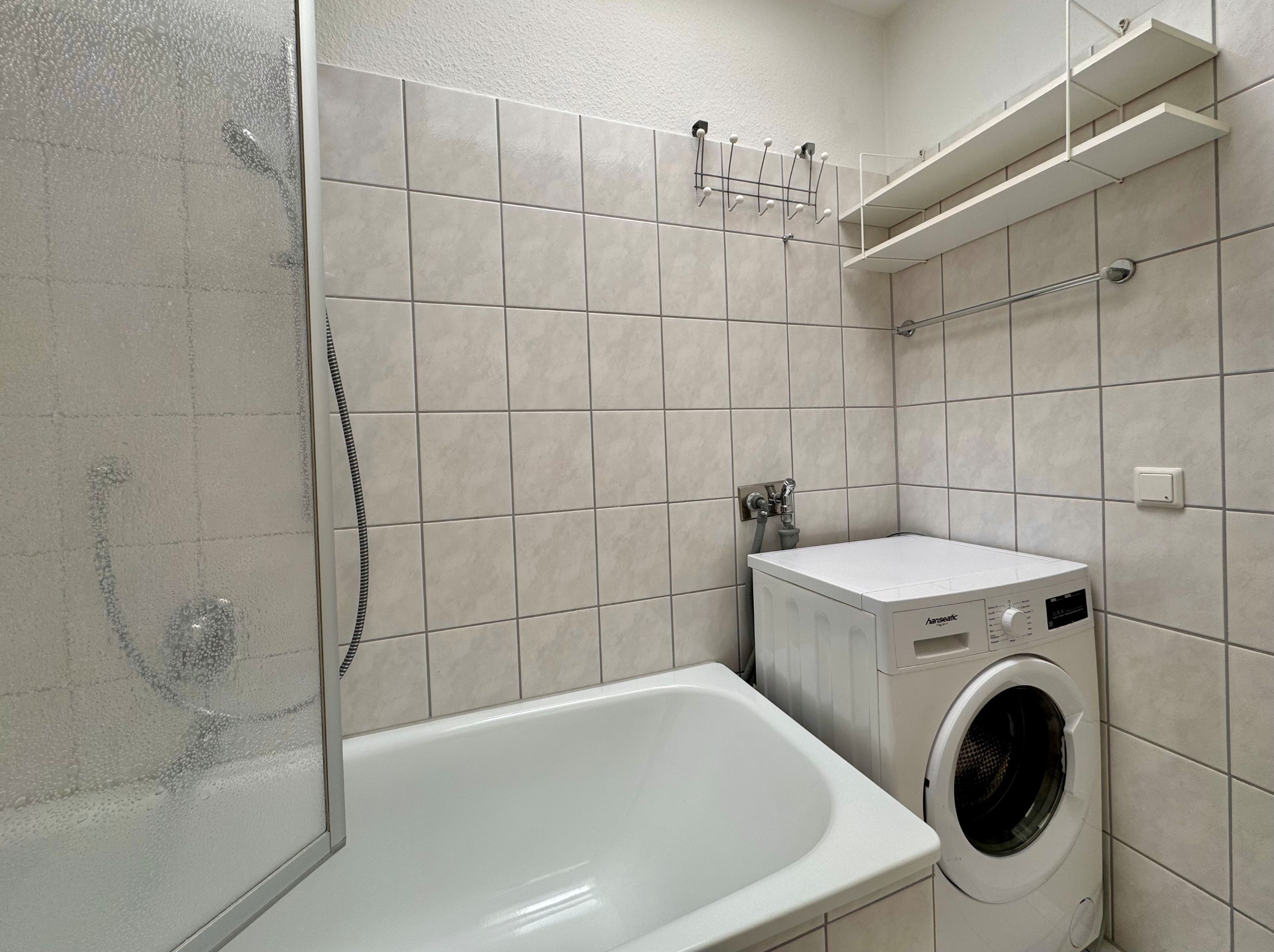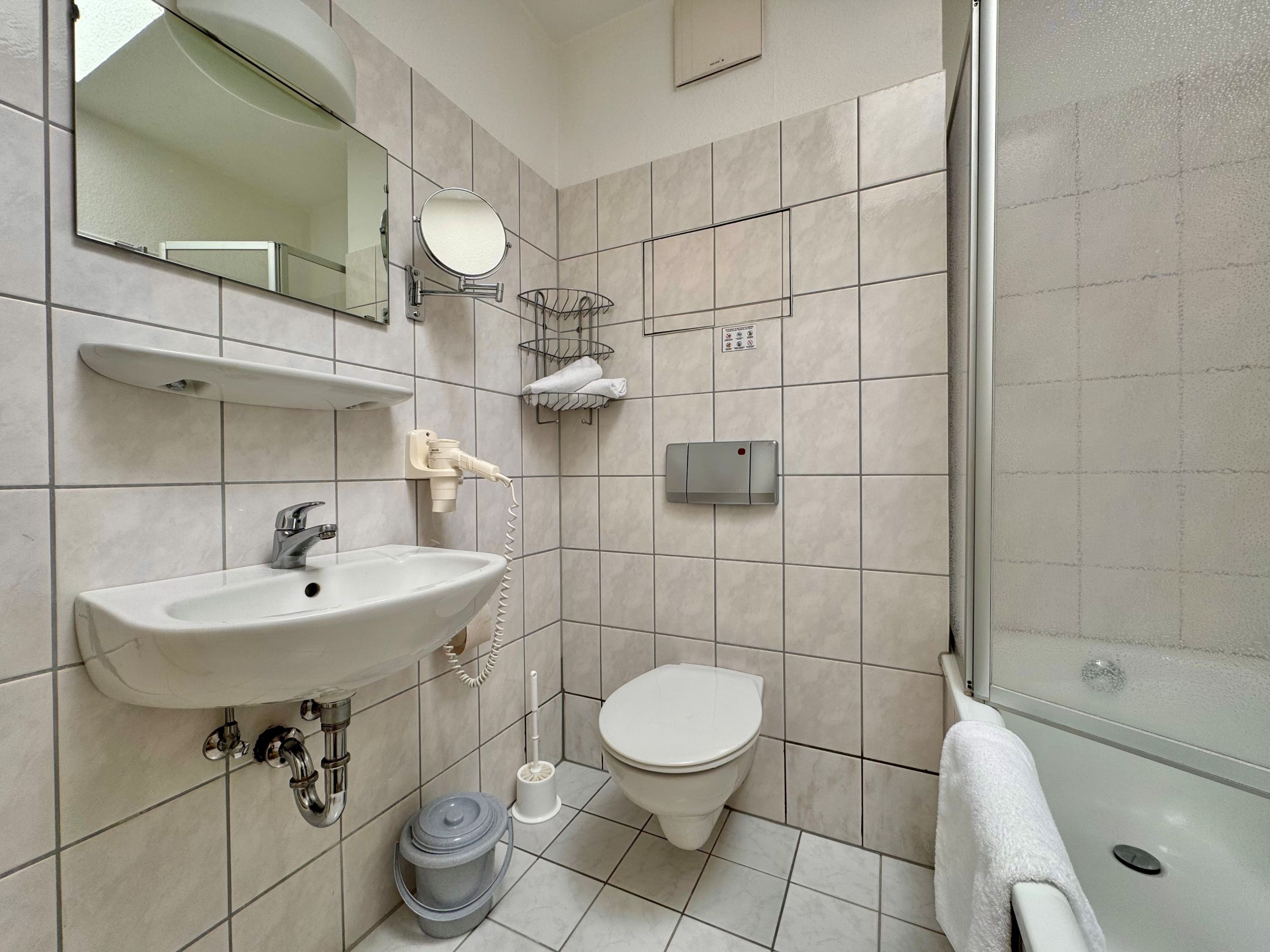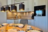 Das Badezimmer verfügt über eine Badewanne/WC, einen Föhn und einen Kosmetikspiegel. Die offene Küche ist voll ausgestattet mit Backofen, Kaffeemaschine und Toaster – hier können Sie nach Herzenslust kochen. Ein Fernseher mit drei Sky-Sendern sorgt für Unterhaltung.