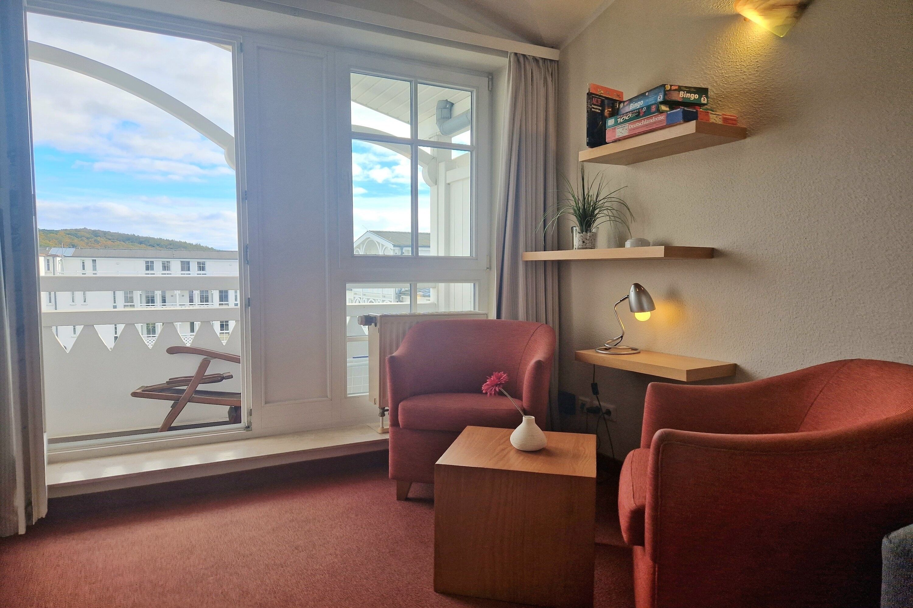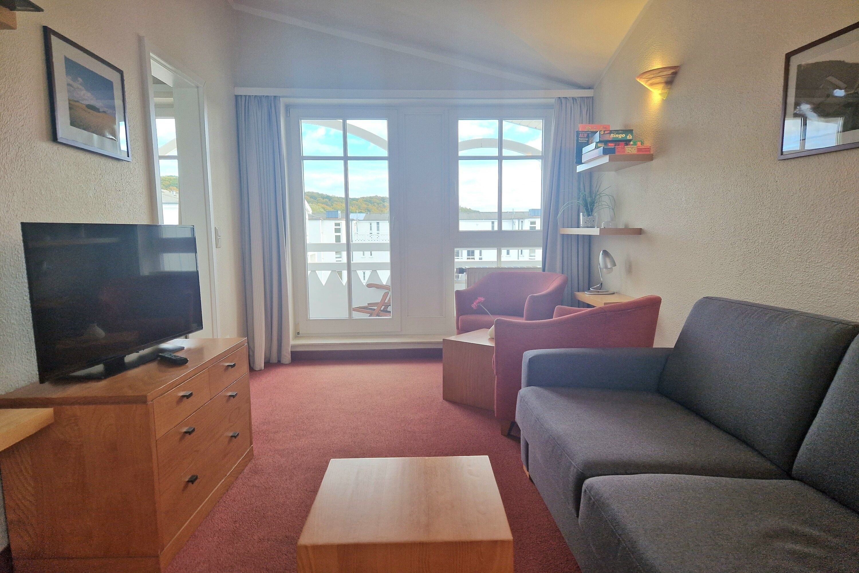 Nach einem erlebnisreichen Urlaubstag können Sie auf dem Balkon in Südostlage Platz nehmen. Der Ausblick und die Sitzgruppe sorgen hier für ein wunderbares Urlaubsgefühl. Im Nichtraucher-Apartment sind keine Haustiere gestattet.