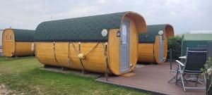 Eine außergewöhnliche Schlafgelegenheit: ein quer eingebautes Doppelbett (2m x 1,6m - 7-Zonen-Kaltschaum-Matratze) bietet Platz für zwei Personen. Licht und Steckdosen sind vorhanden. Ebenso ein Mini-Kühlschrank, ein Wasserkocher, eine Kaffeepad-Maschine, ein Radio und Geschirr für zwei Personen. Im Preis enthalten ist ein Bettlaken für die Matratze. Bettdecken, Kopfkissen und/oder Schlafsäcke, Bettwäsche und Handtücher sind bitte selbst mitzubringen. Vor jedem Fass befindet sich eine eigene kleine Terrasse mit Tisch und Stühlen für gemütliche Frühstücke und Grillabende. In dem Areal der Camping-Fässer steht Ihnen ein Sanitärcontainer zur Verfügung, der von allen Mietern des Areals benutzt werden darf. Haustiere sind nicht erlaubt.