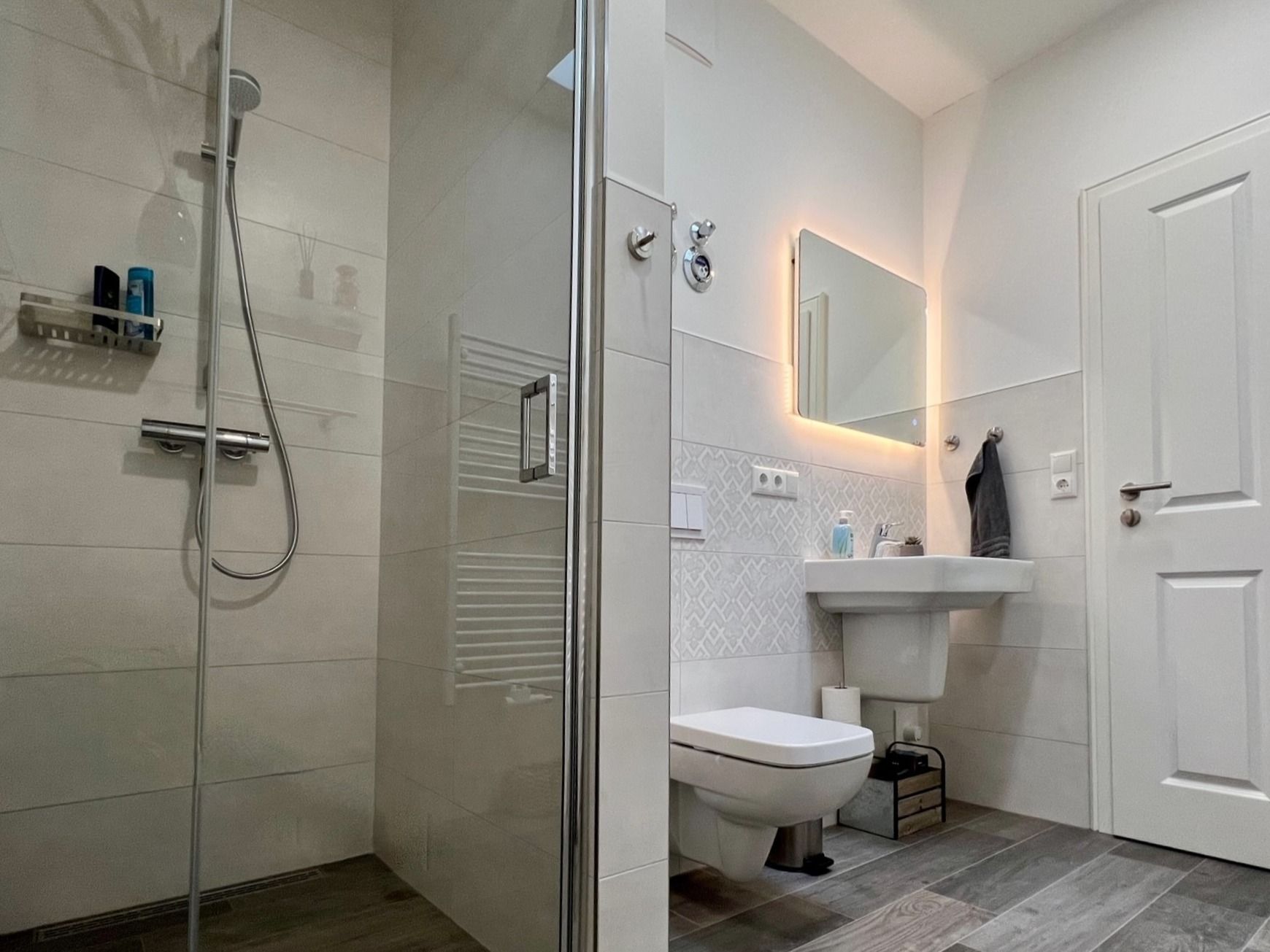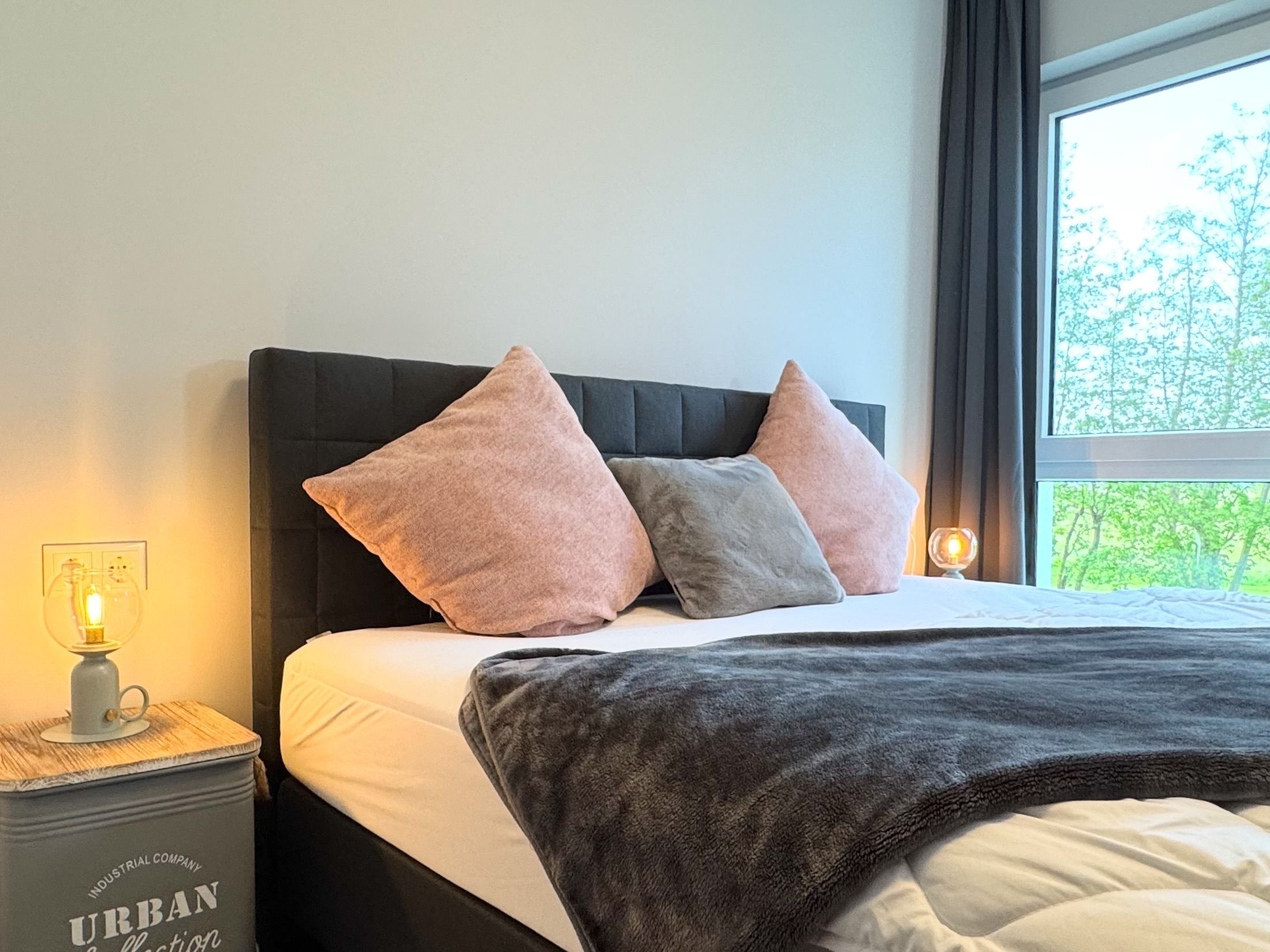 Die hochwertige Küche mit Kochinsel ist komplett ausgestattet. Zwei Schlafzimmer mit Boxspringbetten sowie ein Tageslichtbad mit ebenerdiger Dusche und Fußbodenheizung sorgen für Komfort. Privater Parkplatz und abschließbarer Fahrradschuppen mit Ladestation für E-Bikes vorhanden. Superschnelles WLAN.