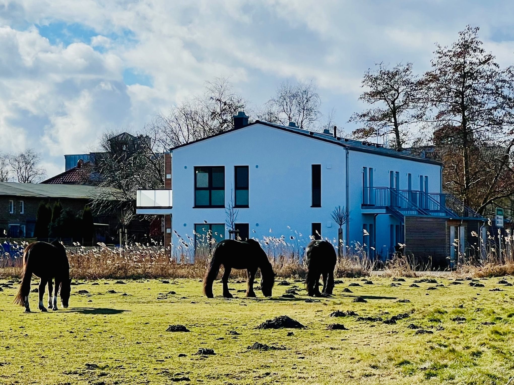 Moderne Ferienwohnung in ruhiger Naturlage zwischen Bodden und Ostsee. Großer Balkon mit Blick auf Kranichflüge zur Vogelinsel Kirr, Kamin, Boxspringbetten, WLAN, Fahrradschuppen. Ideal für Strandurlauber, Naturliebhaber, Radfahrer und Vogelfreunde am Nationalpark Vorpommersche Boddenlandschaft.