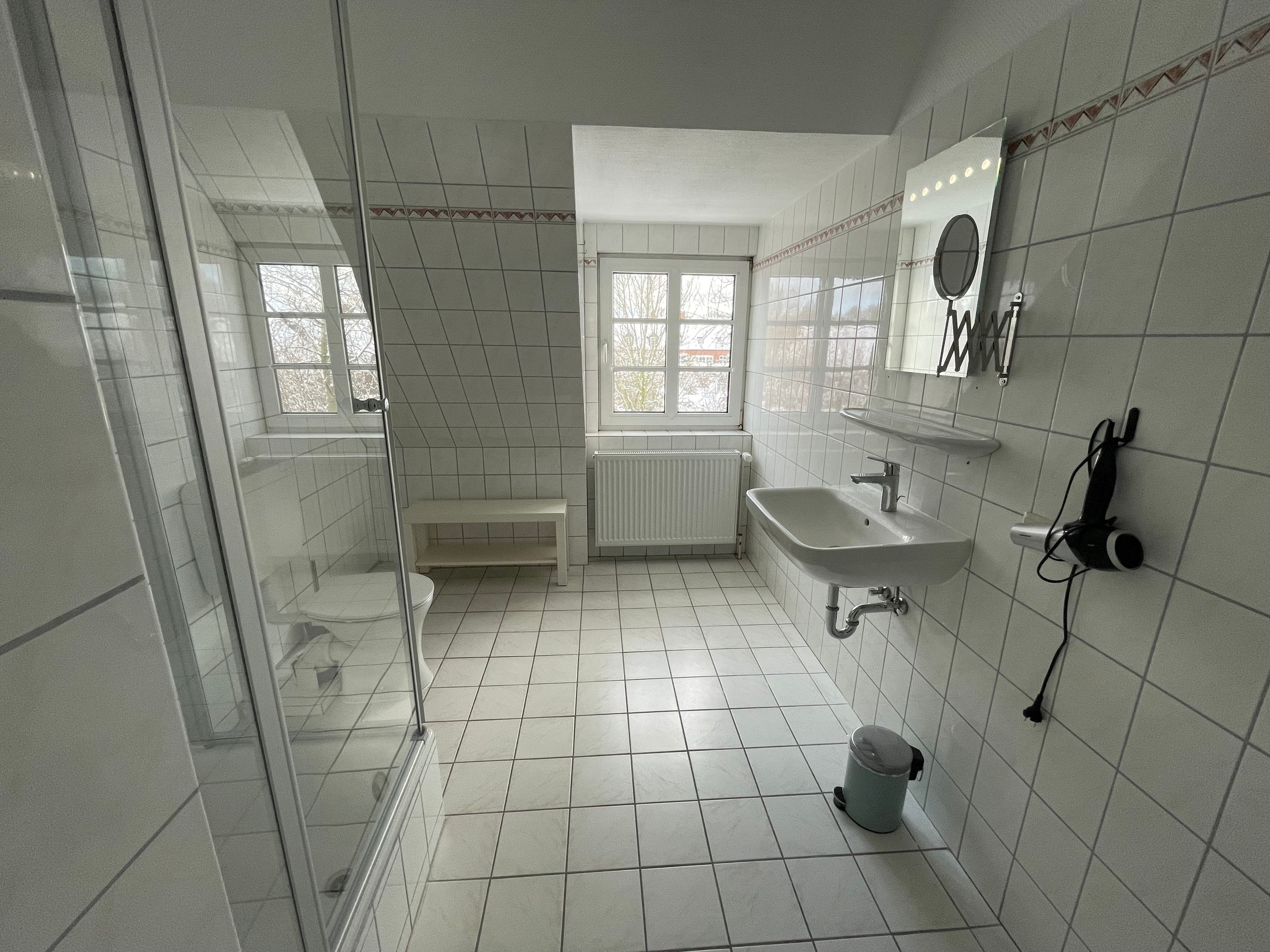 Ein besonderer Lieblingsplatz ist für uns die große, voll ausgestattete Küche mit Sitzecke. Hier lässt es sich wunderbar gemeinsam frühstücken, kochen oder einfach bei einer Tasse Tee den Tag Revue passieren zu lassen. Das moderne Duschbad ist praktisch und komfortabel gestaltet.