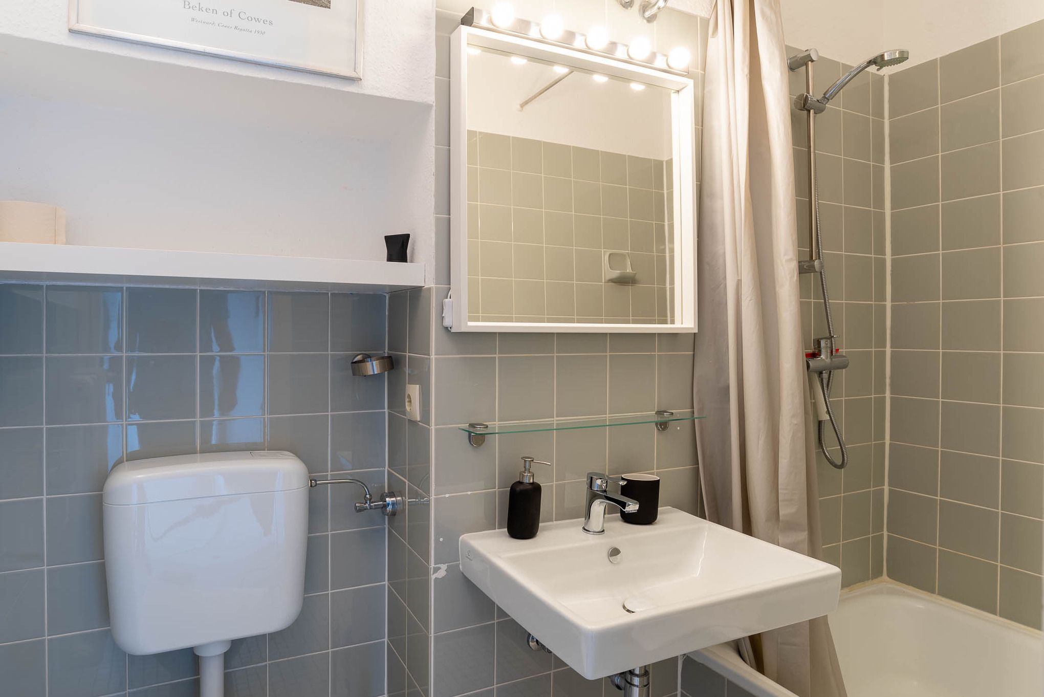 Die 1-Zimmer-Wohnung ist freundlich eingerichtet. Beim Betreten der Wohnung gelangen Sie zuerst in einen kleinen Flur mit Möglichkeiten Ihr Gepäck zu verstauen. Von hier aus erreichen Sie das voll ausgestattete Badezimmer, sowie den Wohn-, Ess-, und Schlafbereich. Das Apartment lässt sich bei Bedarf mit Gardinen abdunkeln. Zum Übernachten steht Ihnen ein Doppelbett (Liegefläche von 160 x 200 cm) zur Verfügung. Neben einer Vitrine, die ausreichend Stauraum bietet und einem Sessel ist zudem ein kleiner Flatscreen-Fernseher in diesem Apartment für Sie vorhanden.