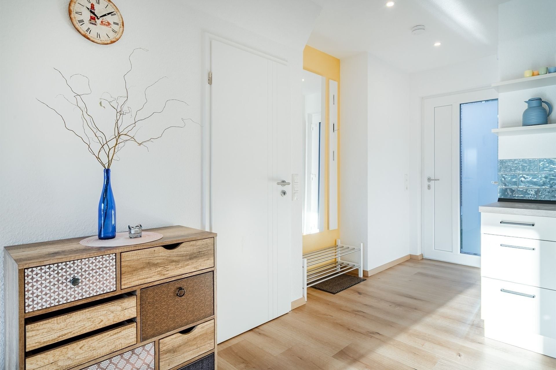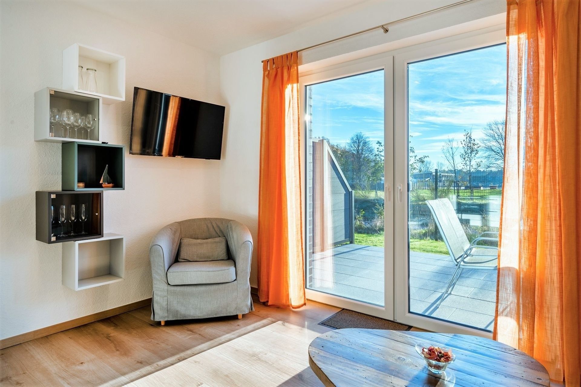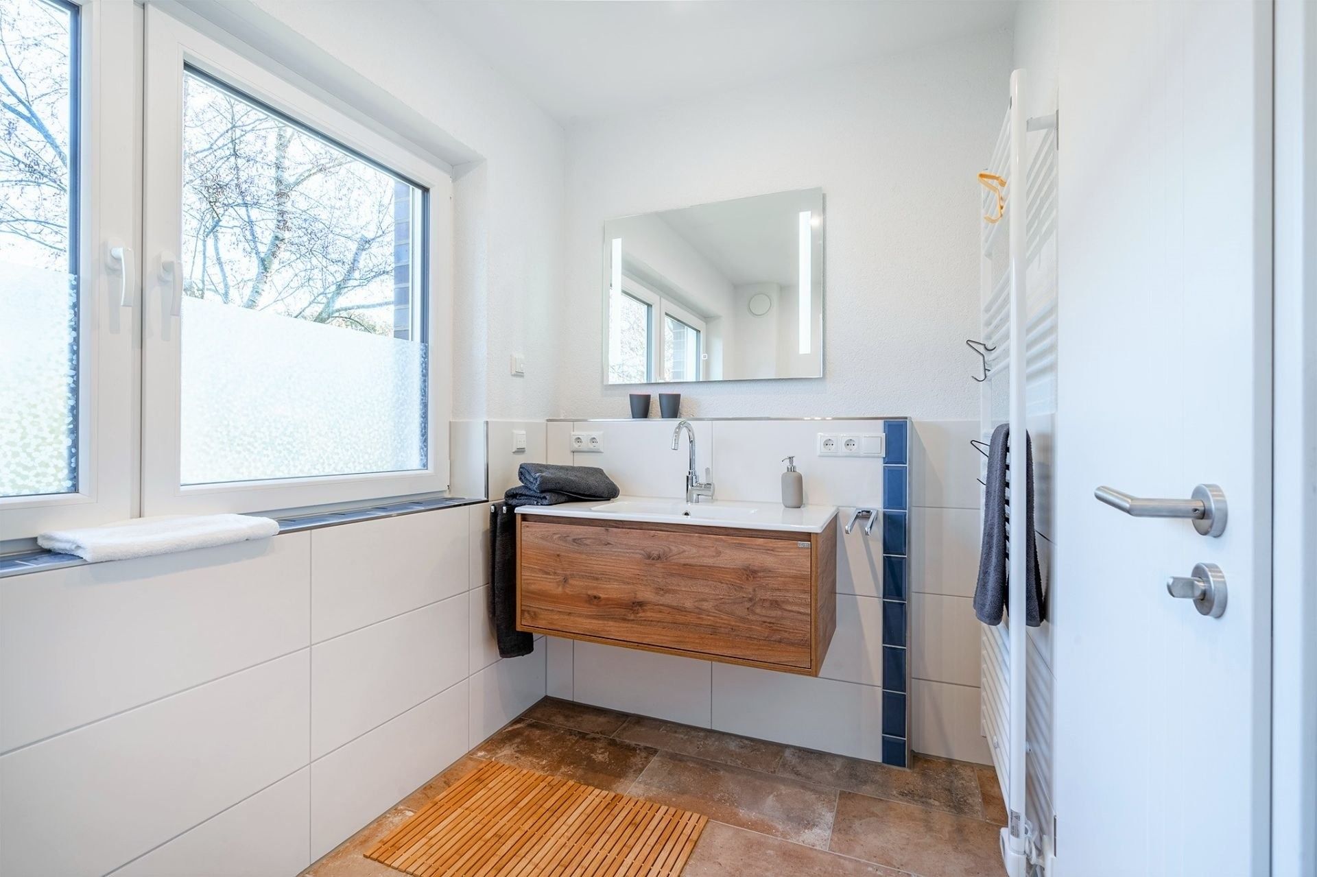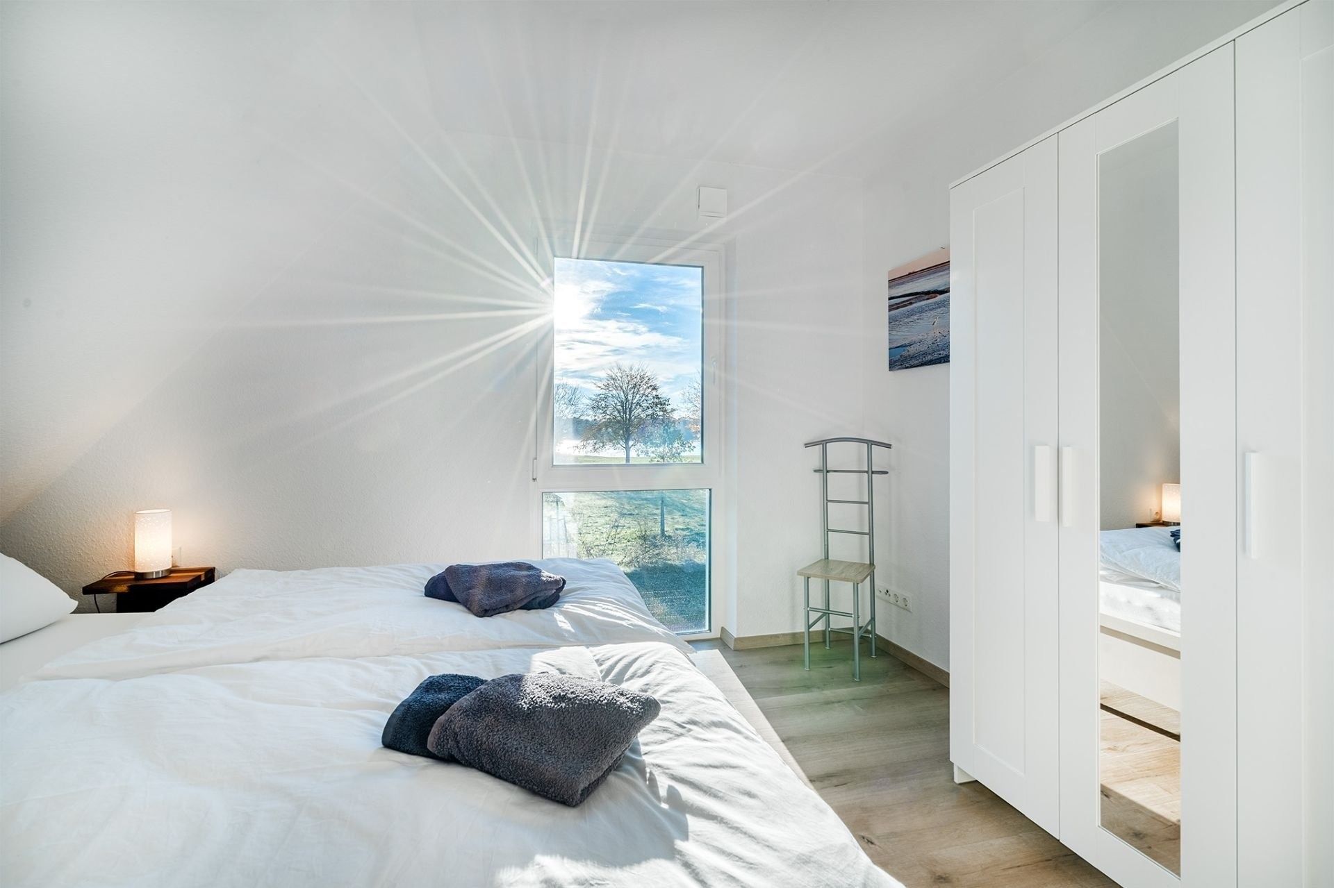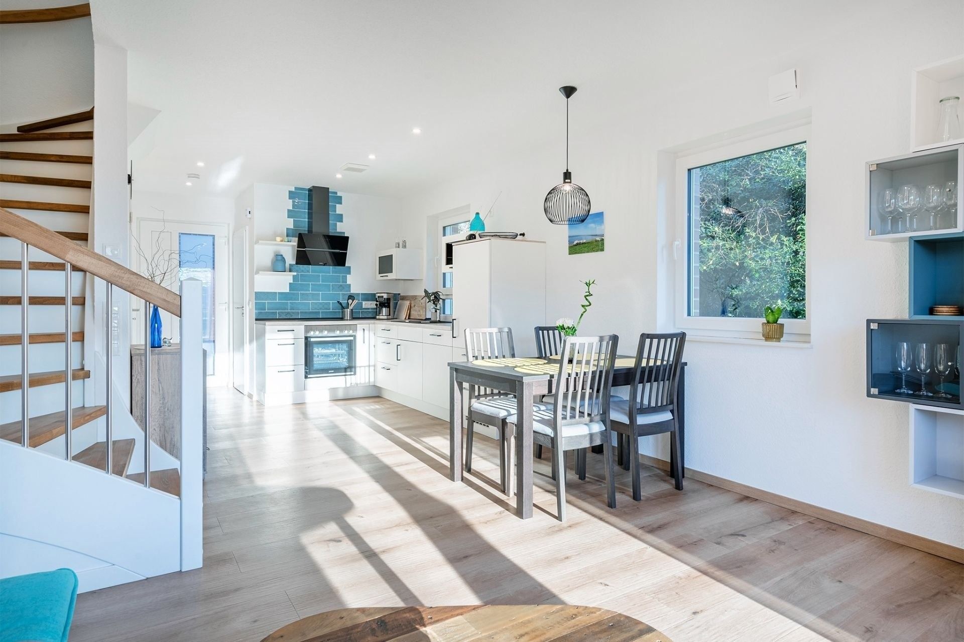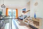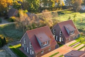 Doppelhaus direkt am Badesee Aurich-Tannenhausen.Das modern und liebevoll eingerichtete Doppelhaus Nitschke - FeWo Ebbe bietet die Möglichkeit, im Herzen Ostfrieslands Ihren Urlaub zu genießen. Die Ferienwohnung in einer unserer beiden in 2022 neu gebauten Doppelhäusern liegt direkt am idyllischen Badesee in Aurich-Tannenhausen. Jede Doppelhaushälfte verfügt über ~60 m² Wohnfläche und bietet Platz für bis zu vier Personen. Das offengestaltete Erdgeschoss mit Koch-/ Wohn- und Essbereich sowie die daran anschließende Terrasse laden zum Wohlfühlen ein. Im Obergeschoss befinden sich zwei gemütliche Schlafzimmer und ein großes Tageslichtbad mit begehbarer Dusche, Waschbecken und WC. Parkplatz für PKW ist direkt am Haus. Größere Familien dürfen gerne beide Doppelhaushälften zusammen reservieren.