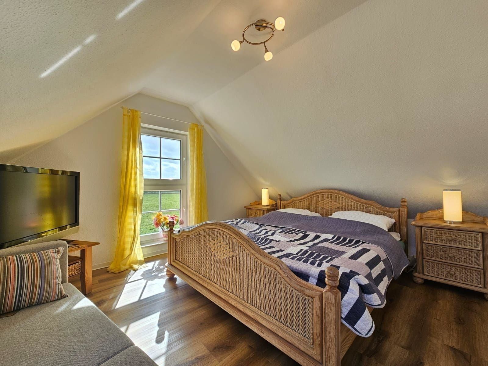Die Ferienwohnung bietet eine großzügige und allergikergeeignete Unterkunft mit drei gemütlichen Schlafzimmern, ausgestattet mit je einem Doppelbett. Die offenen Wohnräume schaffen eine einladende Atmosphäre, während die moderne Küche mit Geschirrspüler, Elektro- und Gasherd, Backofen, Kühlschrank sowie einer Kaffeemaschine und einem Toaster für kulinarische Freiheit sorgt. Ein Esstisch bietet Platz für gemeinsame Mahlzeiten. Für zusätzlichen Komfort stehen zwei Badezimmer zur Verfügung, eines davon mit einer Badewanne und einem Fenster. Der Kamin sorgt in kälteren Monaten für wohlige Wärme. Zur Ausstattung gehören zudem WLAN, ein TV, eine Waschmaschine und ein Kinderhochstuhl. Für entspannte Tage im Freien steht ein Sonnenschirm bereit, und ein Parkplatz ist direkt am Haus verfügbar. Ein Starterset mit Seife, Duschgel und Toilettenpapier rundet das Angebot ab.