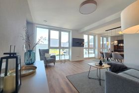 Die Ferienwohnung befindet sich in einer ruhigen und zugleich zentralen Lage im charmanten Norden. Die Umgebung bietet vielfältige Freizeitmöglichkeiten für Aktivurlauber und Entspannungssuchende. Der nächste Strand, ideal zum Baden und Windsurfen, ist nur etwa 5 Kilometer entfernt. Golfer finden in nur 3 Kilometern Entfernung einen ansprechenden Golfplatz. Auch Angler und Wassersportbegeisterte kommen auf ihre Kosten, mit zahlreichen Möglichkeiten zum Bootsausflug und Kanufahren in unmittelbarer Nähe. Rad- und Wanderwege laden dazu ein, die malerische Landschaft zu erkunden. Für Familien stehen Spielplätze und ein Minigolfplatz in der Nähe zur Verfügung. Einkaufs- und Shoppingmöglichkeiten sind ebenfalls in der Umgebung zu finden. Kulturell Interessierte können ein Museum in nur 2 Kilometern Entfernung besuchen. Die Anreise ist unkompliziert, und die Lage ermöglicht es, die vielfältigen Angebote der Region bequem zu genießen.