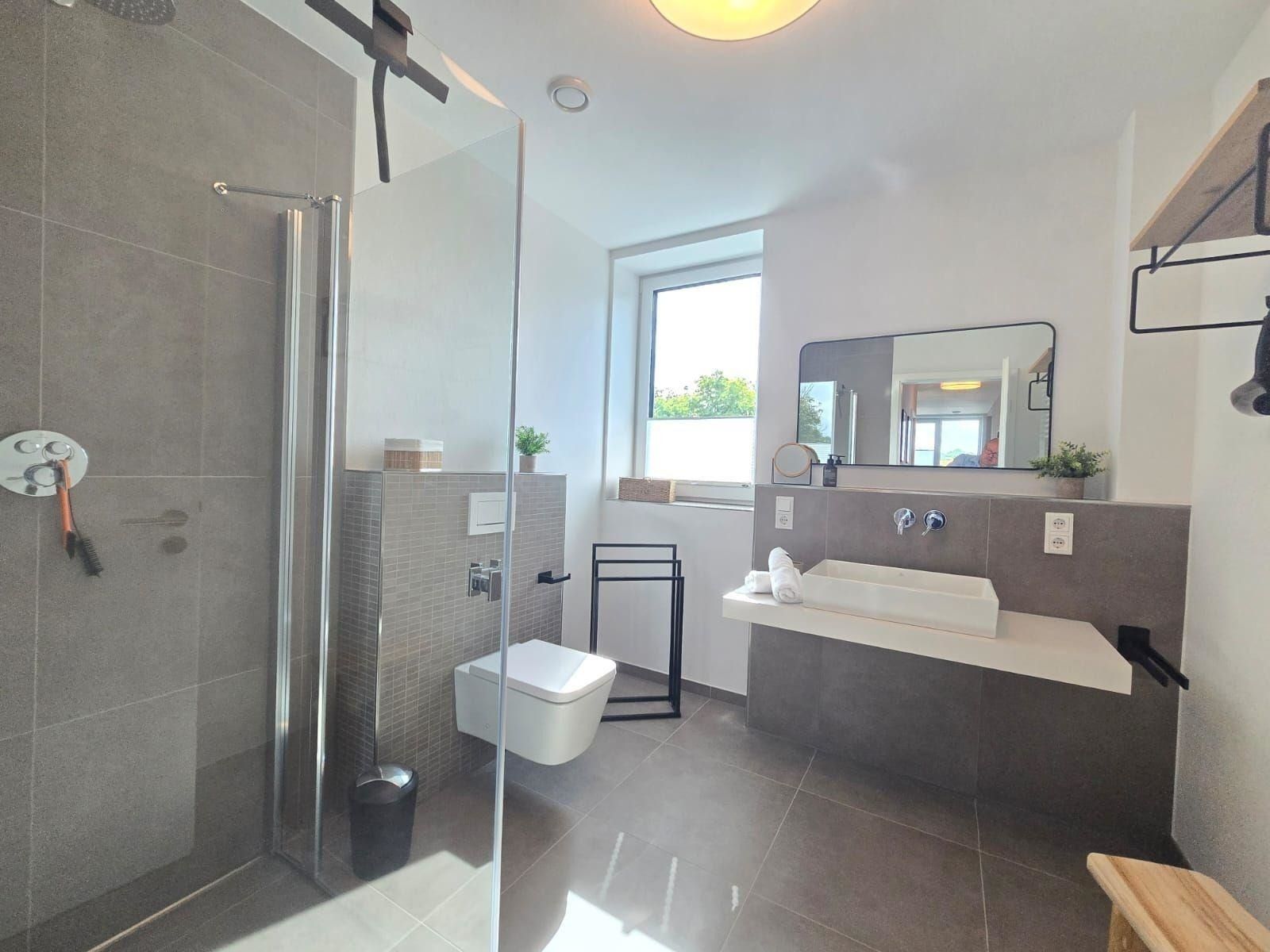 Das Badezimmer ist mit einem Fenster ausgestattet und bietet neben einem Duschbad auch einen Haartrockner sowie einen Kosmetikspiegel. Zusätzliche Annehmlichkeiten umfassen Internet mit WLAN, einen Fernseher, und einen eigenen Parkplatz. Für Allergiker geeignet, ist die Wohnung mit einem Starterset an Reinigungsmitteln und Hygieneartikeln ausgestattet. Ein Fahrstuhl erleichtert den Zugang, während der Sessel und der Esstisch im Wohnbereich zum Verweilen einladen. Die perfekte Kombination aus Komfort und Funktionalität für einen entspannten Aufenthalt.