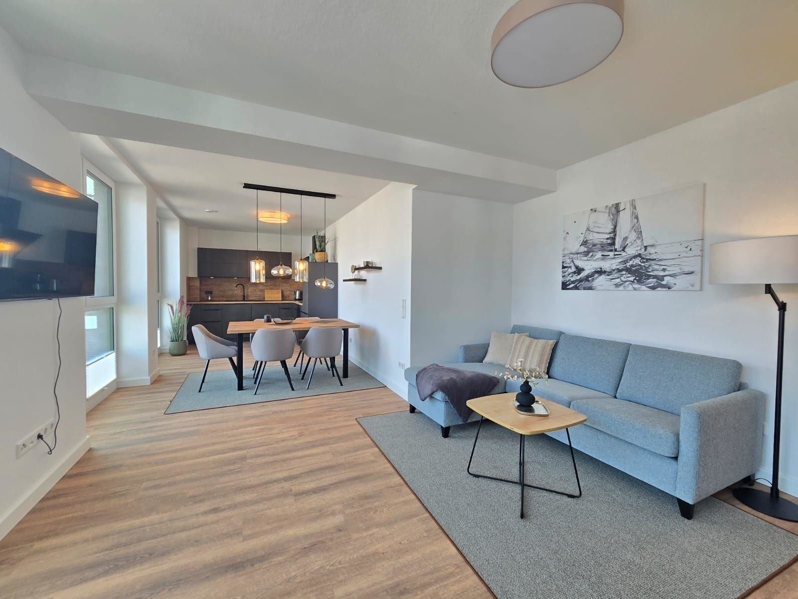 Diese Ferienwohnung bietet eine ideale Unterkunft für erholsame Tage. Sie verfügt über drei großzügige Schlafzimmer mit jeweils einem Doppelbett, die für einen komfortablen Schlaf sorgen. Die offene Küche ist mit modernen Geräten ausgestattet, darunter ein Geschirrspüler, Elektro-/Gasherd, Backofen, Mikrowelle, Kühlschrank, Kaffeemaschine, Toaster und Wasserkocher, was das Kochen zum Vergnügen macht.