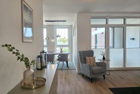 Die Ferienwohnung präsentiert sich als idealer Rückzugsort mit einer großzügigen Raumaufteilung. Sie bietet zwei Schlafzimmer mit komfortablen Doppelbetten, die für eine erholsame Nachtruhe sorgen. Die offene Küche ist bestens ausgestattet mit einem Elektro-/Gasherd, Geschirrspüler, Kühlschrank und Backofen sowie einer Mikrowelle und Kaffeemaschine, ideal für die Zubereitung von Mahlzeiten. Das moderne Badezimmer verfügt über ein Fenster, ein Duschbad und einen Haartrockner. Zur weiteren Ausstattung gehören ein komfortables Sofa, ein Esstisch, TV und WLAN-Internet, das für Unterhaltung sorgt. Für Familien stehen ein Kinderhochstuhl und eine Waschmaschine bereit. Die Wohnung ist allergikergeeignet und bietet Annehmlichkeiten wie einen Parkplatz und einen Fahrstuhl. Ein Starterset mit Reinigungsmitteln, Toilettenpapier und Pflegeprodukten sorgt für einen stressfreien Aufenthalt.