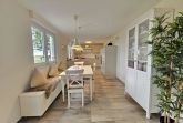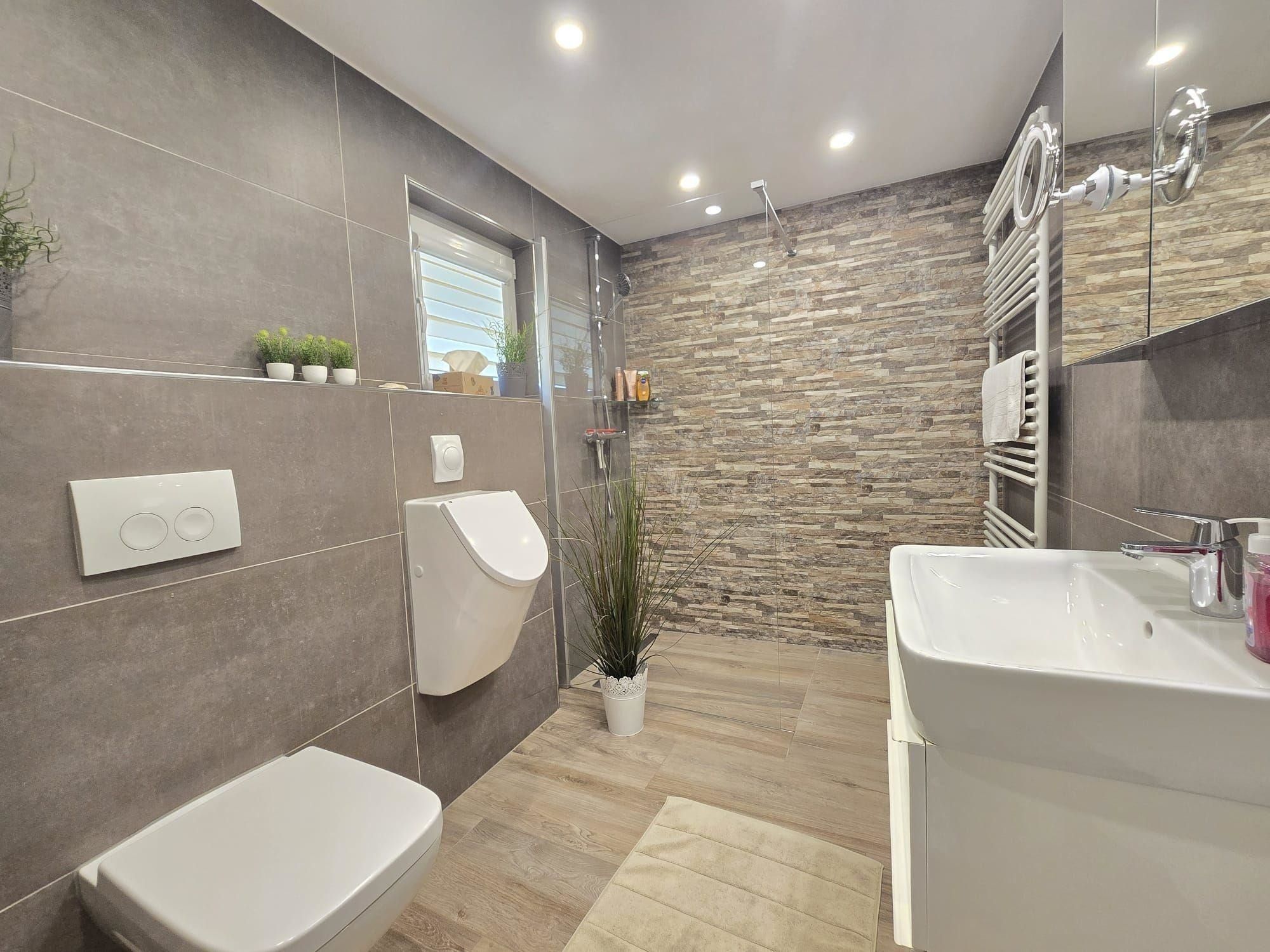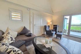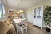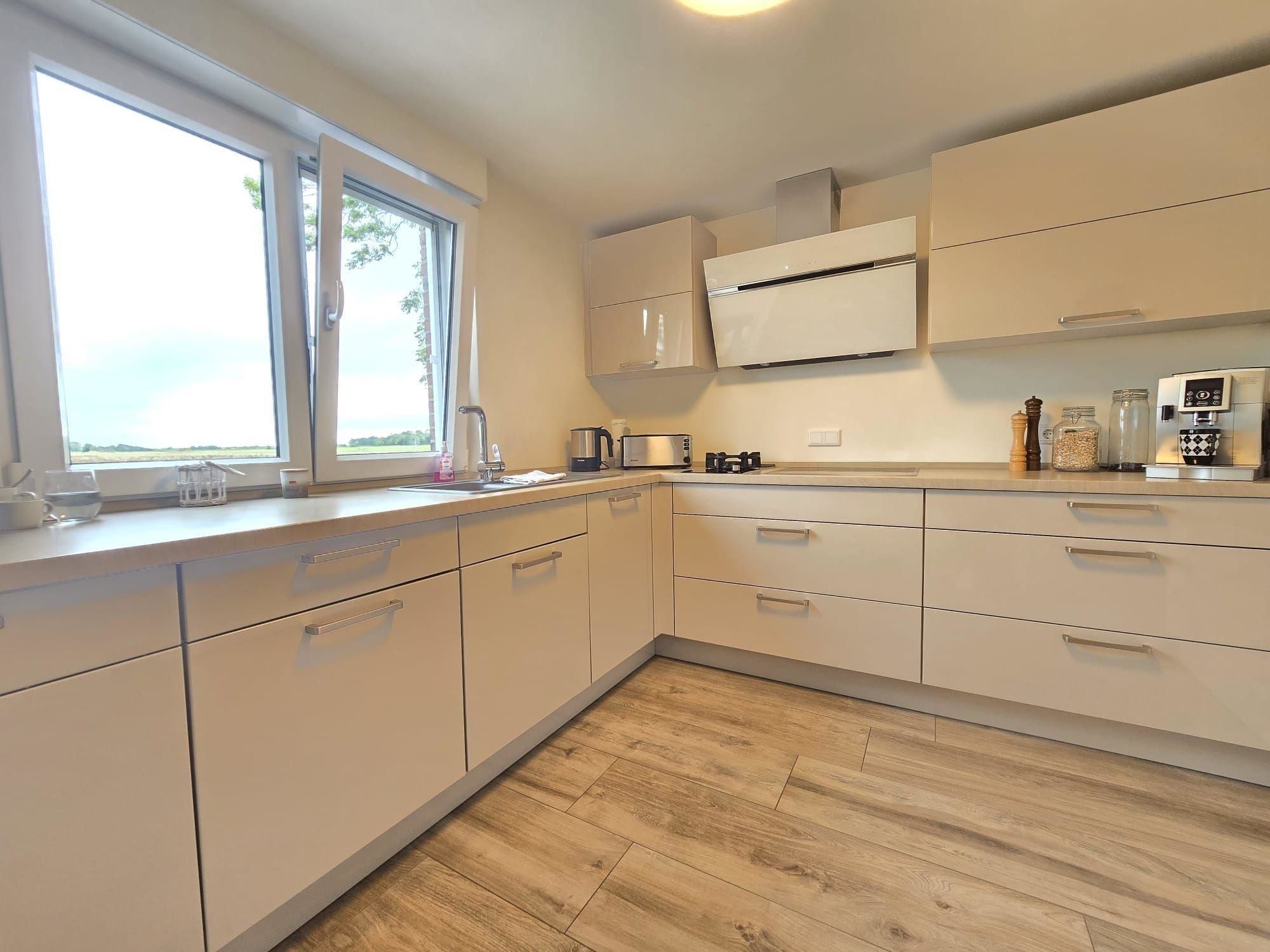 Die Ferienwohnung bietet eine moderne und komfortable Ausstattung, ideal für einen entspannten Aufenthalt. Sie verfügt über zwei Schlafzimmer mit zwei Doppelbetten und einem Einzelbett, die Allergiker geeignet sind. Die offene Küche ist mit einem Geschirrspüler, Elektro-/Gasherd, Backofen, Mikrowelle, Kühlschrank, Kaffeemaschine und Toaster ausgestattet. Ein Kinderhochstuhl steht bereit. Das Badezimmer mit Fenster und einer bodengleichen Dusche samt einem Gäste-WC sorgt für zusätzlichen Komfort.