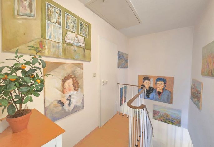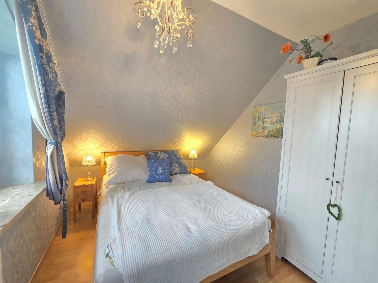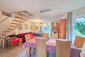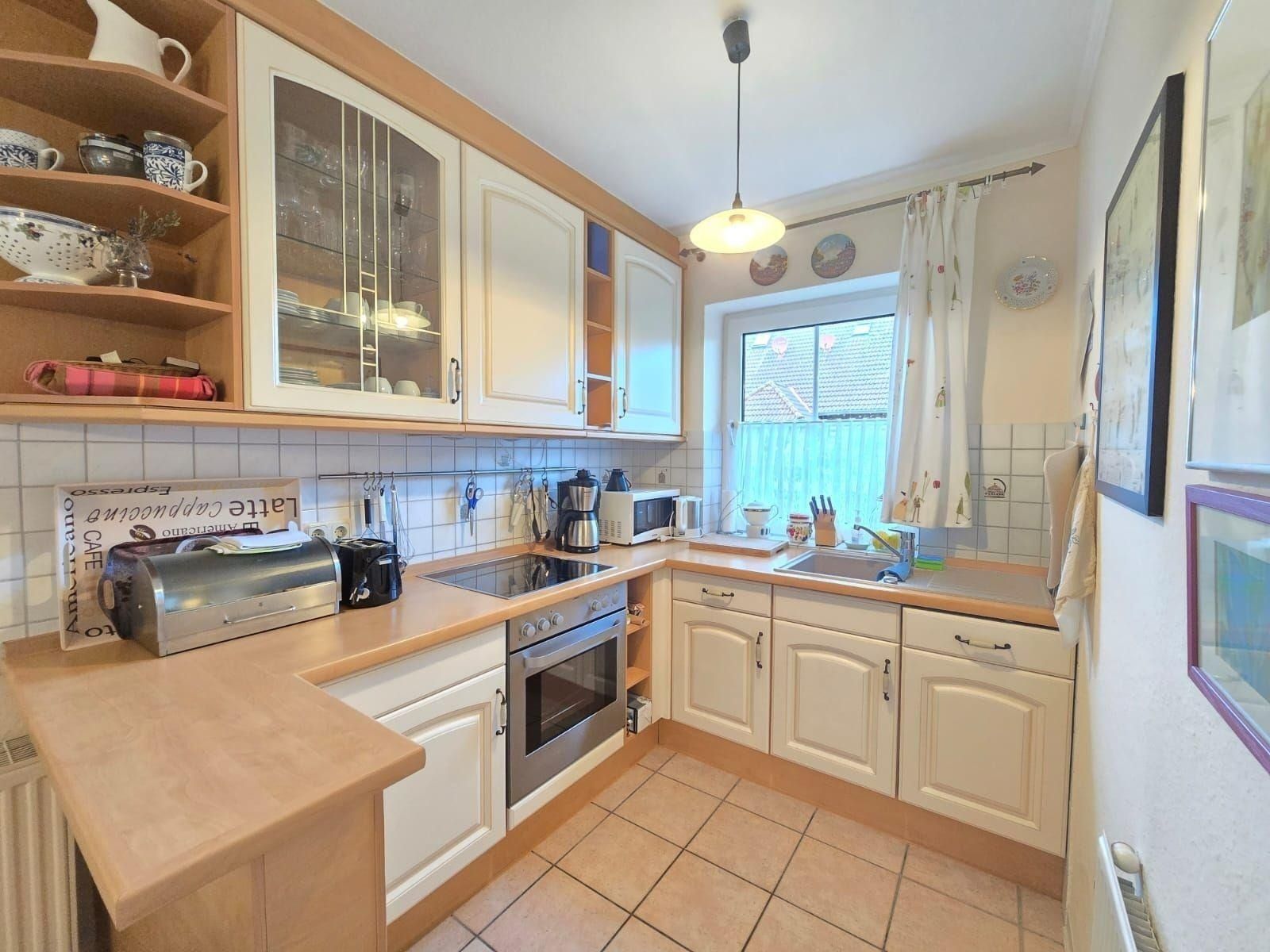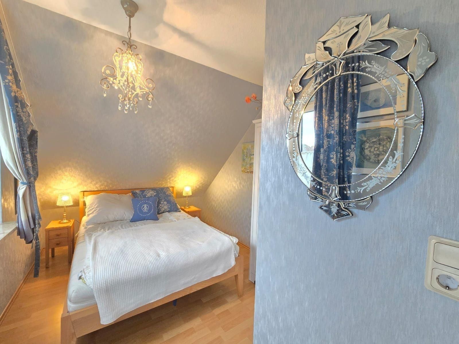 Die Ferienwohnung bietet einladende Räumlichkeiten, die ideal für einen erholsamen Aufenthalt gestaltet sind. Sie verfügt über zwei Schlafzimmer mit jeweils einem komfortablen Doppelbett, die allergikerfreundlich eingerichtet sind. Das offene Wohnkonzept verbindet den Wohnbereich mit einer voll ausgestatteten Küche, die Elektro-/Gasherd, Geschirrspüler, Backofen und Mikrowelle umfasst. Ein Essbereich mit Esstisch lädt zu gemeinsamen Mahlzeiten ein. Komfort für die ganze Familie wird durch die Bereitstellung von Kinderhochstuhl und Kinderspielzeug gewährleistet.