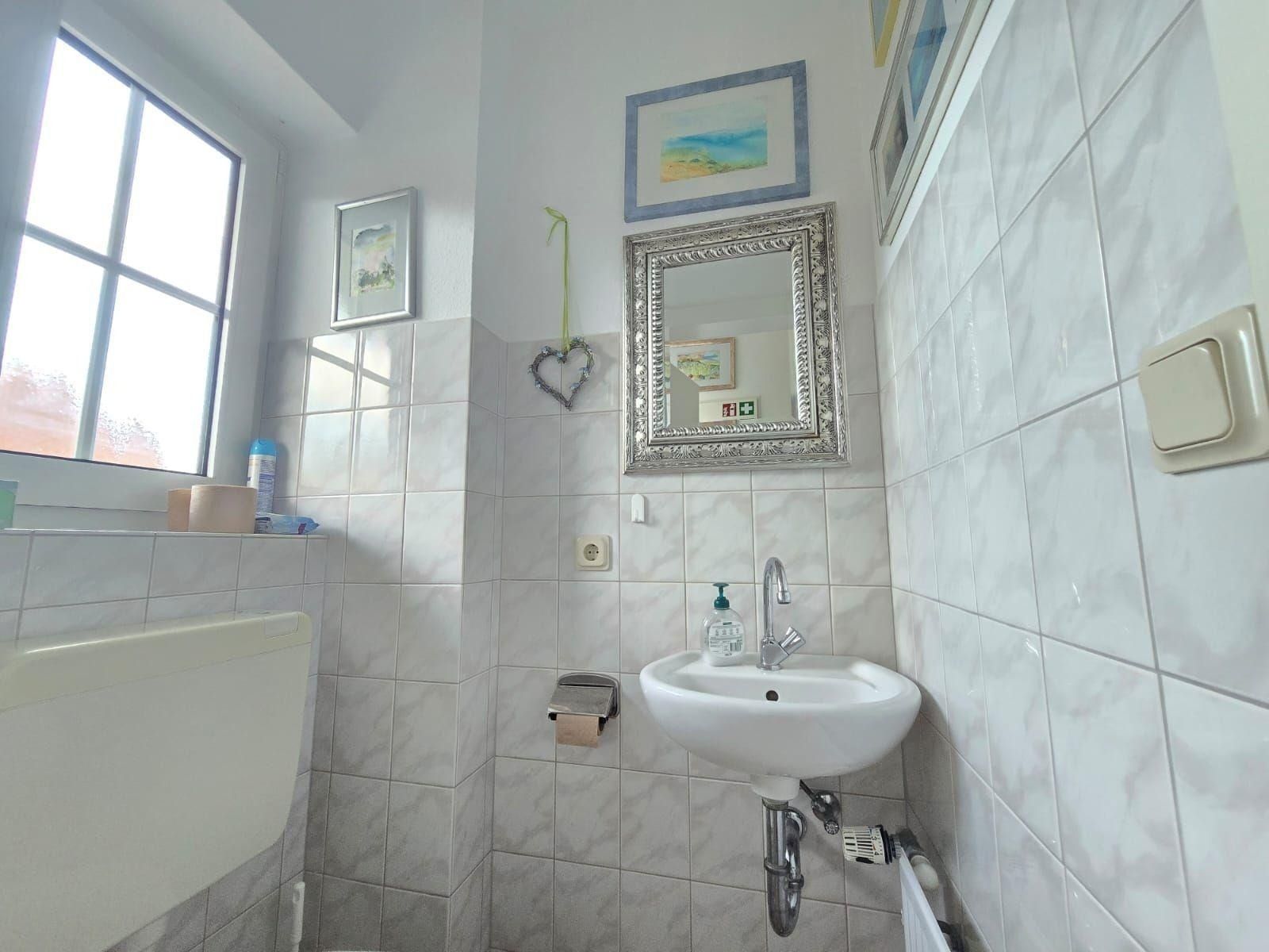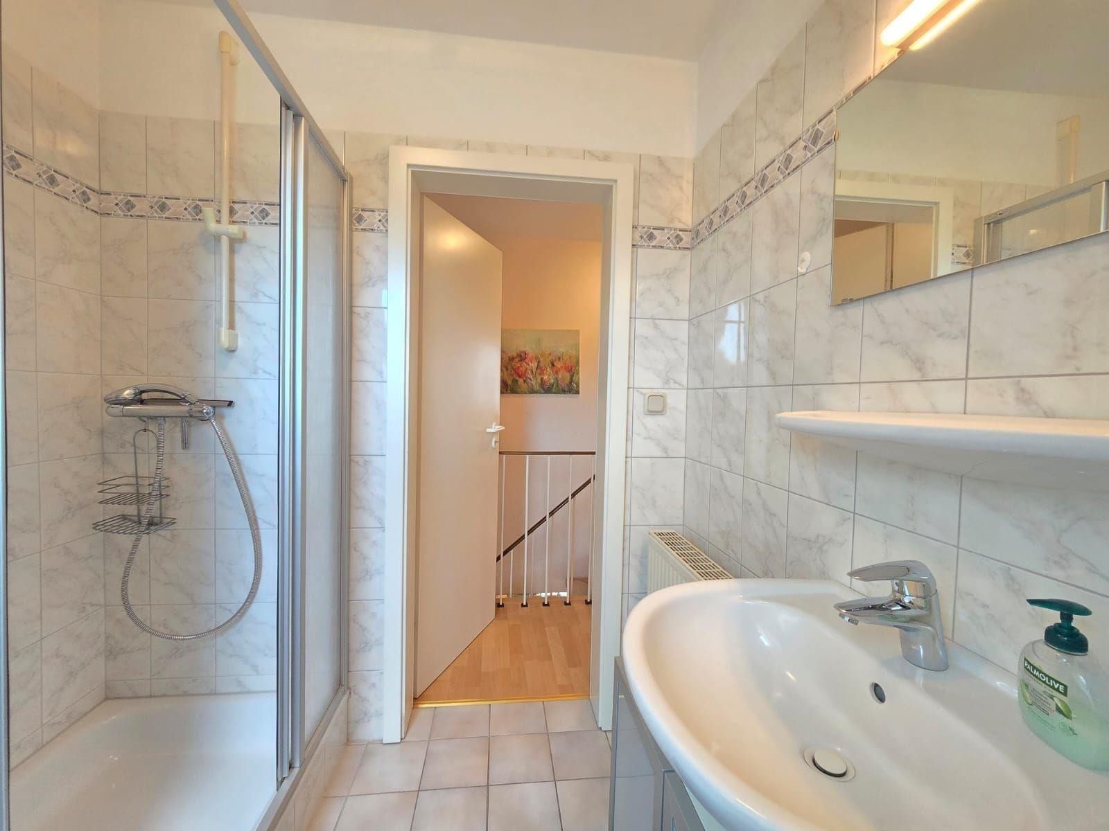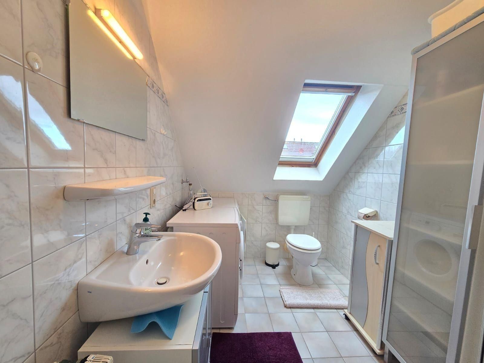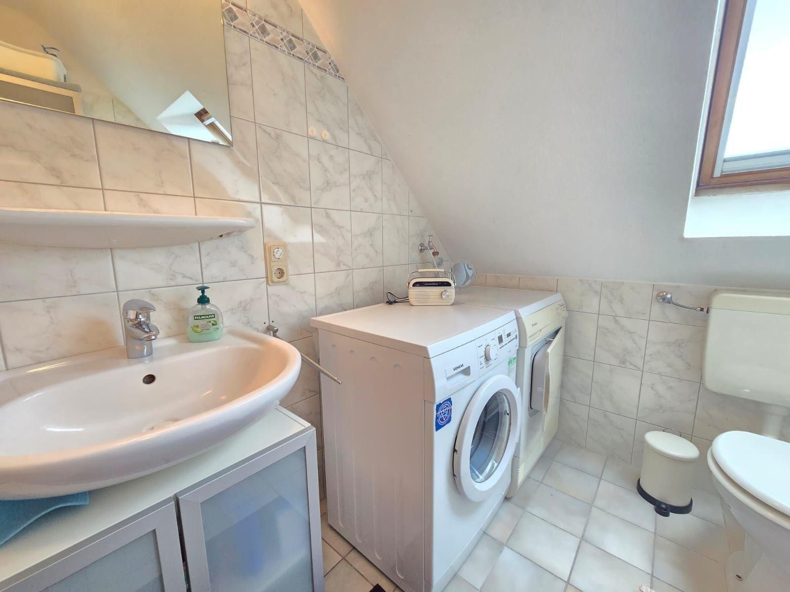 Das moderne Badezimmer mit Fenster ist mit einem Duschbad, Haartrockner und Kosmetikspiegel ausgestattet. Ein zusätzliches Gäste-WC sorgt für mehr Privatsphäre. Die Wohnung ist mit WLAN, TV, HiFi-Anlage und zahlreichen Annehmlichkeiten wie Waschmaschine, Wäschetrockner und Bügeleisen komplett ausgestattet. Ein Parkplatz steht zur Verfügung und diverse Brettspiele sorgen für Unterhaltung an gemütlichen Abenden.