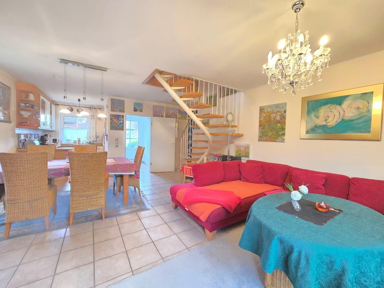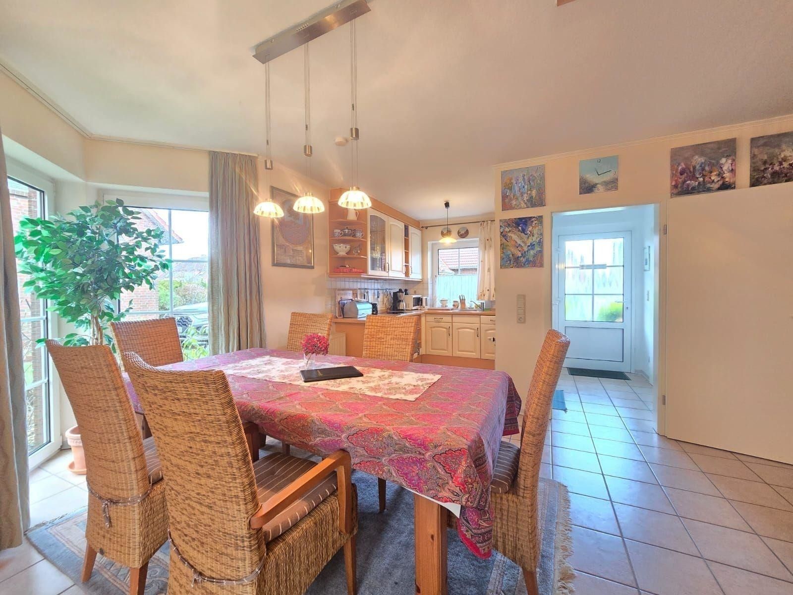 Die Ferienwohnung befindet sich in einer ruhigen Wohnlage in Dornum, ideal für Erholungssuchende und Naturliebhaber. In unmittelbarer Nähe erwarten Strandliebhaber fantastische Küstenabschnitte, die in nur etwa 5 Kilometern erreichbar sind. Hier können ausgedehnte Spaziergänge am Wasser, Sonnenbaden oder entspannendes Baden genossen werden. Das charmante Dorfzentrum von Dornum, mit seinen gemütlichen Cafés und kleinen Geschäften, liegt nur rund 2 Kilometer entfernt und bietet eine Vielzahl an Einkaufsmöglichkeiten sowie lokale Gastronomie. Die Region lädt zudem zu Rad- und Wandertouren durch die malerische Landschaft ein, die direkt vor der Haustür beginnen. Die Anreise erfolgt unkompliziert über die umliegenden Hauptstraßen, wodurch die Ferienwohnung sowohl für Kurztripps als auch für längere Aufenthalte gut zu erreichen ist. Ideal für alle, die eine harmonische Balance zwischen Erholung und Aktivität suchen.