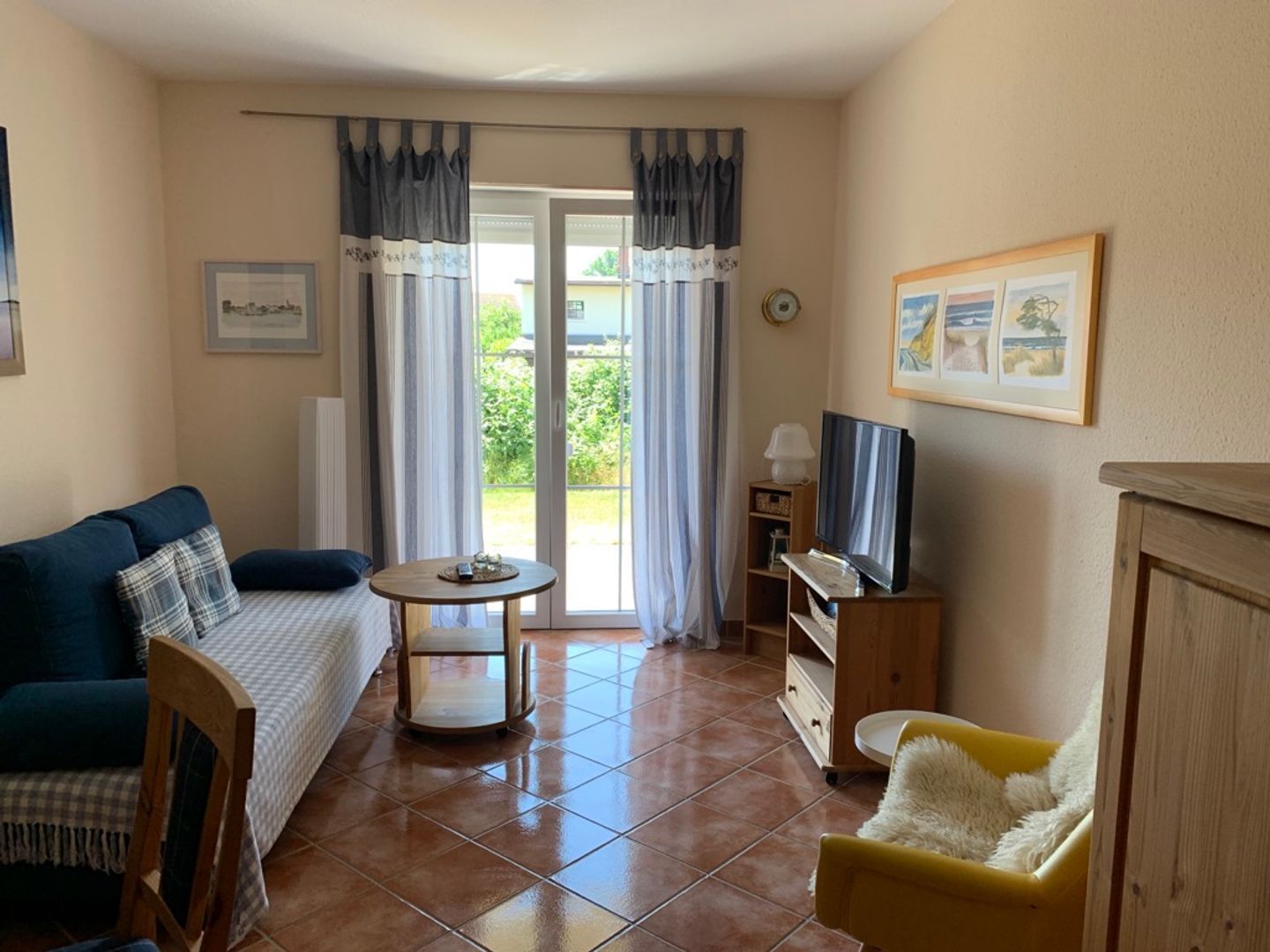 Das separate Schlafzimmer verfügt über ein Doppelbett, Kleiderschrank und TV. Zwei weitere Personen finden auf dem Schlafsofa (140x200m ) im Wohnzimmer einen Schlafplatz.
