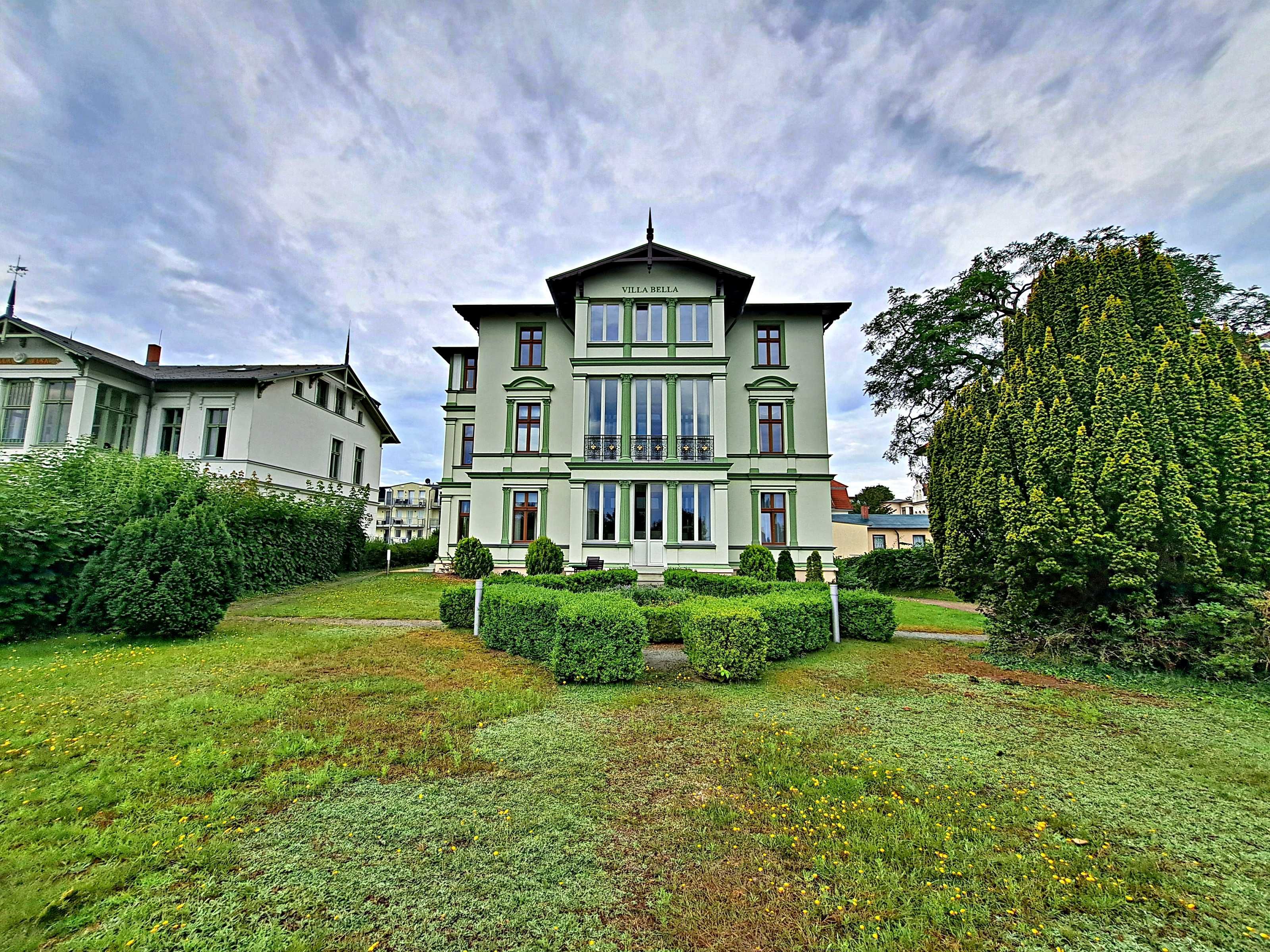 Die Villa Bella gehört zu den schönsten und ältesten Villen der Insel und strahlt im eleganten Stil der Kaiserzeit. Ihre zentrale Lage direkt an der Strandpromenade im Seebad Ahlbeck ist einfach perfekt für einen erholsamen Urlaub.