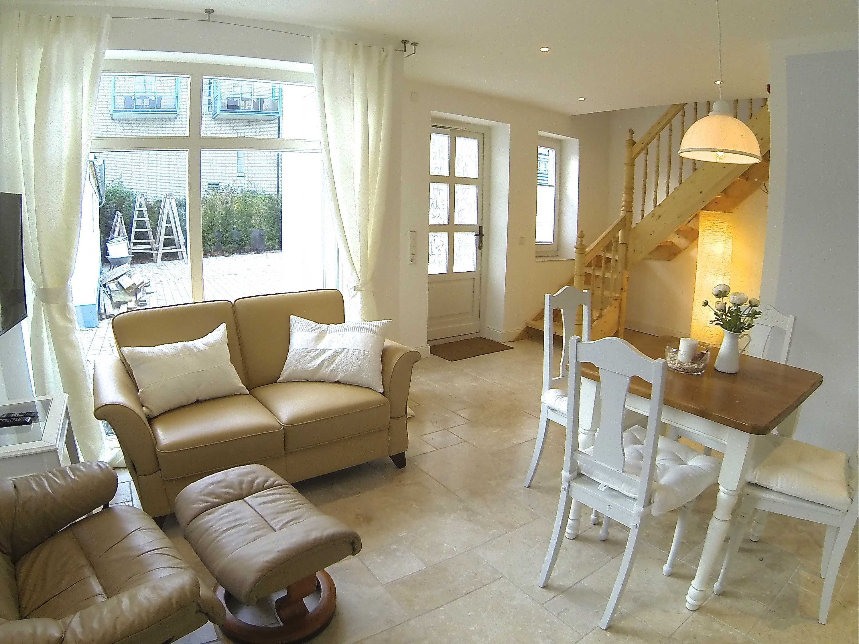 Zu beiden Häusern gehört eine kleine möblierte Außenterrasse. Kostenlose Parkmöglichkeit ist auf dem Grundstück vorhanden. Ausstattung im Einzelnen: