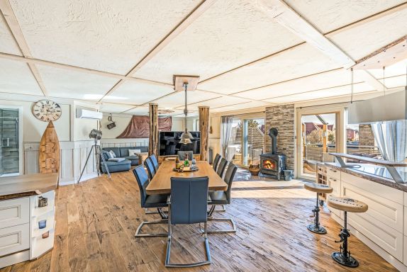 Admiral Stuuv in Barth bietet dir auf großzügigen 178 m² exklusiven Wohnkomfort für bis zu 6 Personen und liegt direkt am Hafen in ruhiger, maritimer Lage. Innen erwartet dich ein offener, lichtdurchfluteter Wohnbereich mit Kamin, großzügiger Sofalandschaft und voll ausgestatteter Küche inklusive Kaffeevollautomat, Backofen, Mikrowelle und großem Kochfeld. Drei Schlafzimmer, zwei stilvolle Bäder sowie ein exklusiver Wellnessbereich mit Sauna und Whirlpool schaffen ideale Voraussetzungen für erholsame Tage mit Familie oder Freunden.