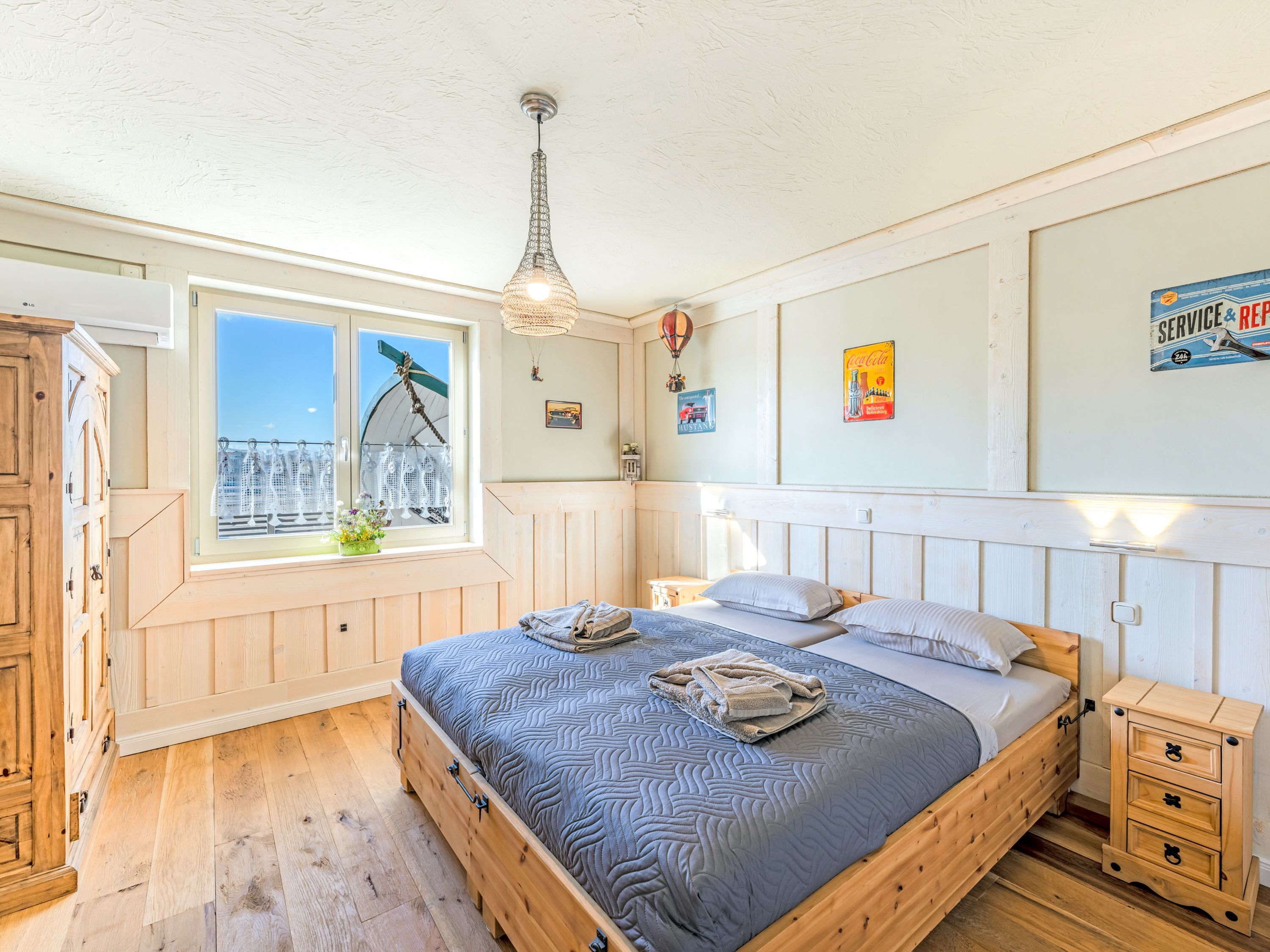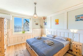 Admiral Stuuv in Barth verbindet großzügiges Wohnen, hochwertige Ausstattung und entspanntes Hafenflair zu einem besonderen Rückzugsort für bis zu 6 Personen. Der offen gestaltete Wohnbereich bildet das Herz der Wohnung und vereint Wohnen, Essen und Kochen zu einem harmonischen Ganzen. Eine großzügige Couch, der Kamin und ein großer TV schaffen eine warme, ruhige Atmosphäre, ideal für gemeinsame Abende oder entspannte Stunden nach einem erlebnisreichen Tag. Die offene Küche fügt sich stilvoll in den Wohnbereich ein und ist hochwertig ausgestattet. Ein großes Kochfeld, Backofen, Mikrowelle, Kühlschrank, Geschirrspüler sowie ein Kaffeevollautomat bieten beste Voraussetzungen für genussvolles Kochen, lange Frühstücke oder gemeinsame Abende am Esstisch. Hier wird Selbstversorgung zum entspannten Teil des Urlaubs. Drei separate Schlafzimmer sorgen für genügend Rückzug und erholsame Nächte. Alle Betten bestehen aus Einzelbetten (90x200), die je nach Wunsch zusammen oder getrennt gestellt werden können. Individuell eingerichtete Schlafzimmer, hochwertige Matratzen, ruhige Farben und Fliegengitter an den Fenstern sorgen für Komfort und ein angenehmes Raumgefühl.