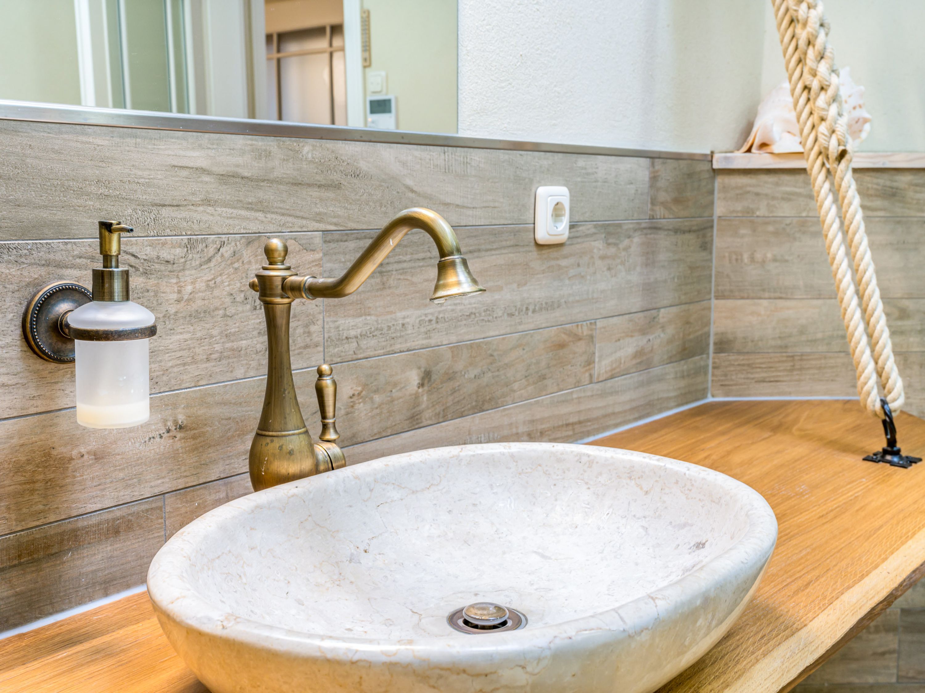 Zwei stilvolle Bäder runden das komfortable Paket ab. Eines davon ist als private Wellnessoase gestaltet und verfügt neben einer ebenerdigen Dusche noch über eine Whirlpool-Badewanne sowie eine integrierte Sauna (holzbeheizt). Das zweite Bad ist mit einer ebenerdigen Dusche ausgestattet. Für Kamin und Sauna steht jeweils ein Korb Kaminholz kostenfrei bereit und unterstreicht den entspannten Charakter der Wohnung.