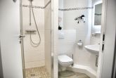 Das lichtdurchflutete Wohnzimmer verfügt über einen Esstisch mit vier Stühlen, ein ausziehbares Schlafsofa mit einem Schlafplatz für zwei Personen und einem Sessel. Die neu eingerichtete Wohnküche ist zum Wohnzimmer hin offen, was den Raum noch weitläufiger erscheinen lässt. Multimedial stehen Ihnen hier ein Flachbildfernseher zur Verfügung. Die Ferienwohnung hat einen Kabelanschluss. Auch einige Gesellschaftsspiele dürfen natürlich nicht im Bestand fehlen. Im Schlafzimmer finden Sie ein komfortables Doppelbett mit höhenverstellbaren Lattenrosten sowie einem großzügig bemessenen Kleiderschrank mit vielfältigen Ablagemöglichkeiten vor. Ihr Kofferinhalt findet hier allen Platz. Die Küchenzeile ist voll ausgestattet. Bestandteile sind unter anderem ein Cerankochfeld, eine Kaffeemaschine, ein Backofen, viel Geschirr, ein Geschirrspüler sowie ein Kühlschrank mit kleinem Gefrierfach. Verwöhnen Sie sich und Ihre Lieben mit und in dieser superpraktischen Küche. Das Badezimmer hat eine Dusche mit Duschkabine und natürlich haben Sie auch hier viele Ablageflächen. Im Flur finden Sie eine Flurgarderobe und eine Abseite vor. Die Flurgarderobe und der große Spiegel werden den Dienst in Ihrem Sinne erfüllen. Das Appartement Fleet liegt im zweiten Obergeschoß des Hauses Wikinger, im Eingang 3. In unmittelbarer Nähe dieses Appartements befinden sich weitere Ferienappartements unserer Gesellschaft. Eine gemeinsame Anmietung ist hier sehr gut möglich.