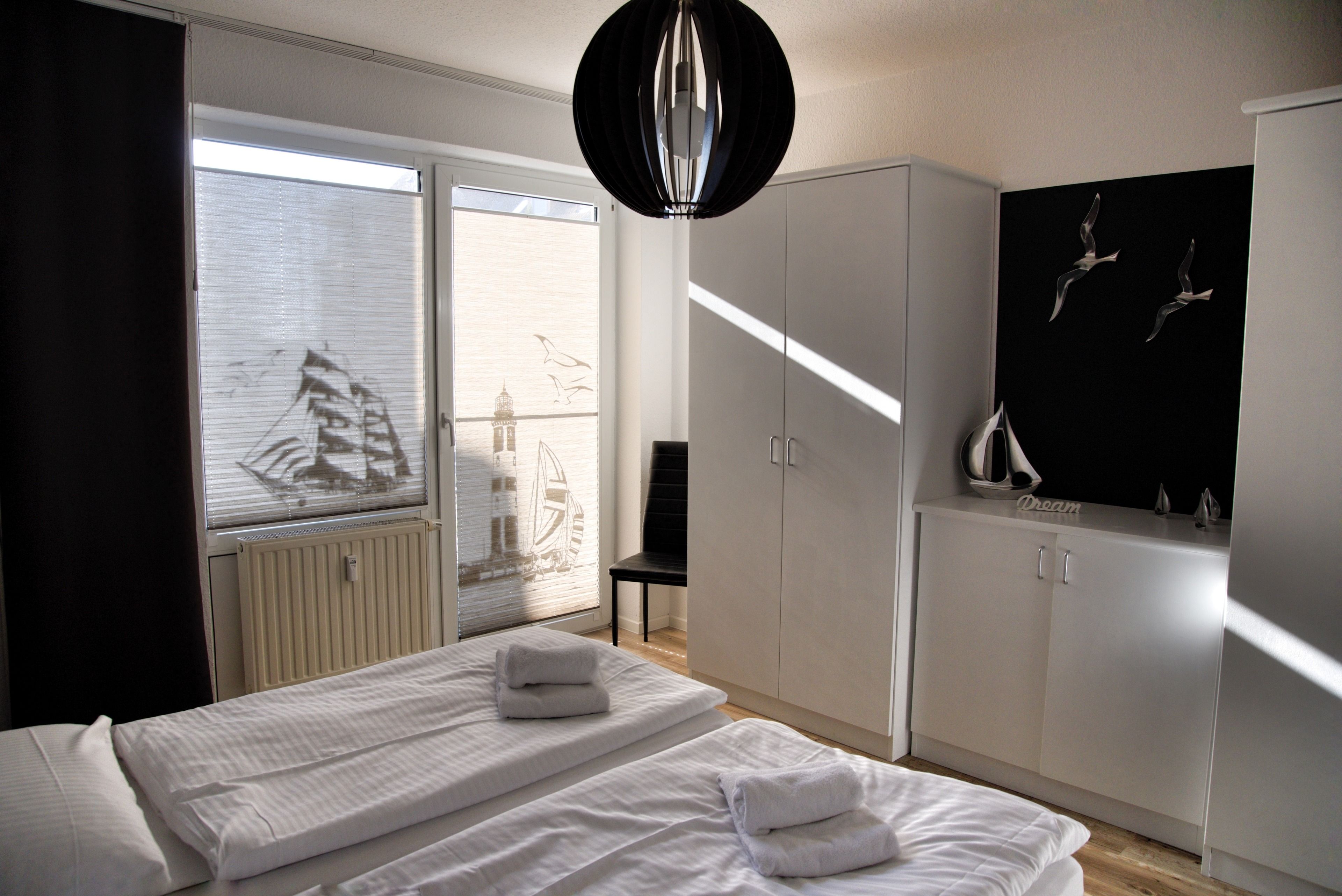 Bei der Ferienwohnung Marina handelt es sich um eine hochwertig eingerichtete, maritim geprägte Nichtraucherwohnung, die sich auf 62 Quadratmetern erstreckt. Auf der Terrasse, welche gen Südwesten ausgerichtet ist, stehen Ihnen Gartenstühle, ein Tisch und ein Sonnenschirm zur Verfügung. Die zwei Schlafzimmer liegen zum Innenhof. Vom Wohnzimmer, der Küche sowie von der Terrasse hat man einen besonderen Ausblick auf die Hafeneinfahrt der Marina.