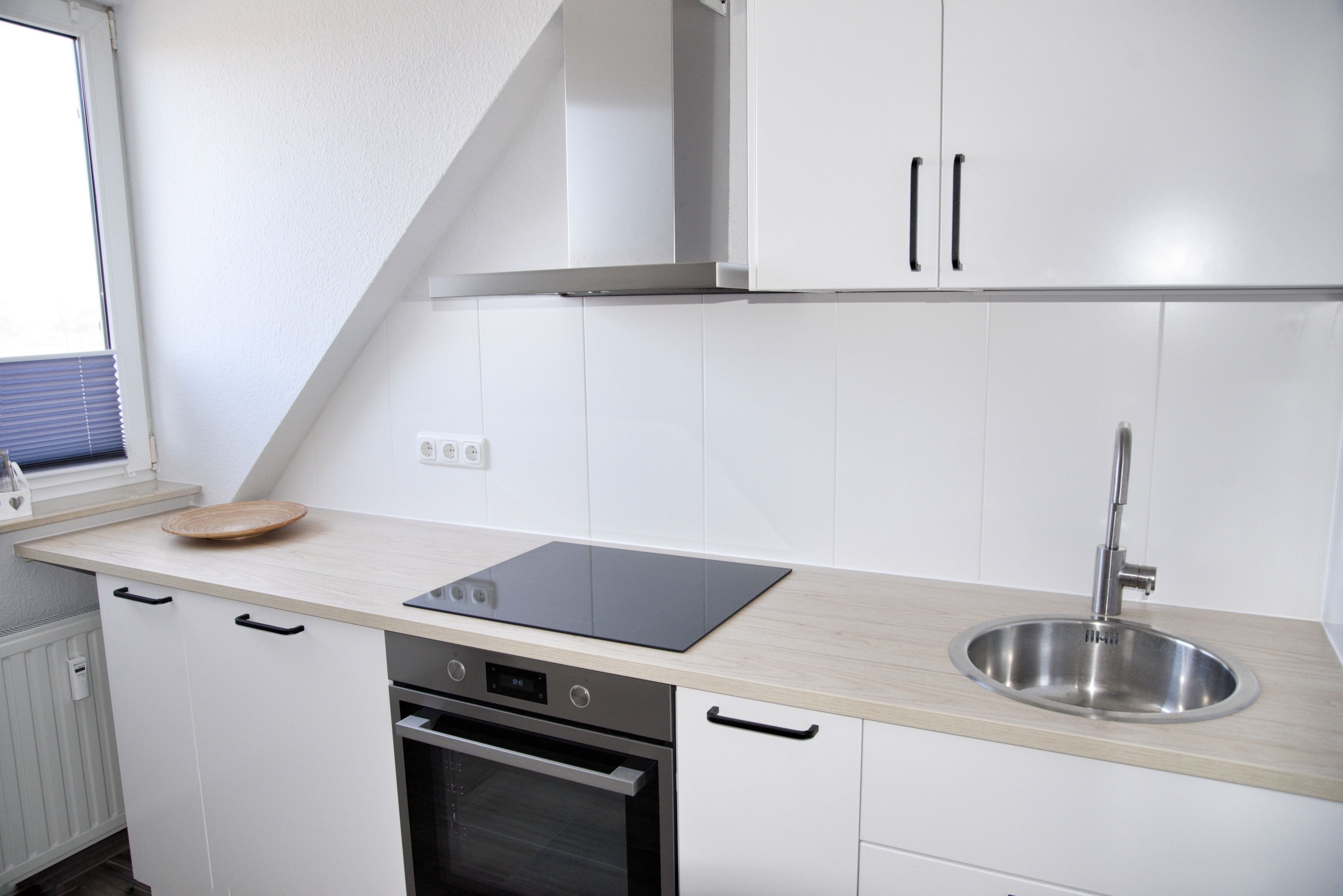 Ihre große Küche ist für Sie voll ausgestattet. Bestandteile sind unter anderem ein Kochfeld, ein Backofen, eine Kaffeemaschine, eine Mikrowelle, viel Geschirr, eine Kühlschrank mit kleinem Gefrierfach sowie weiteres Equipment für Ihren kulinarischen Einfallsreichtum. Das Badezimmer hält eine Dusche mit Duschkabine, Ablageflächen und einen Fön für Sie bereit. All Ihre Utensilien finden hier ausreichend Platz.
