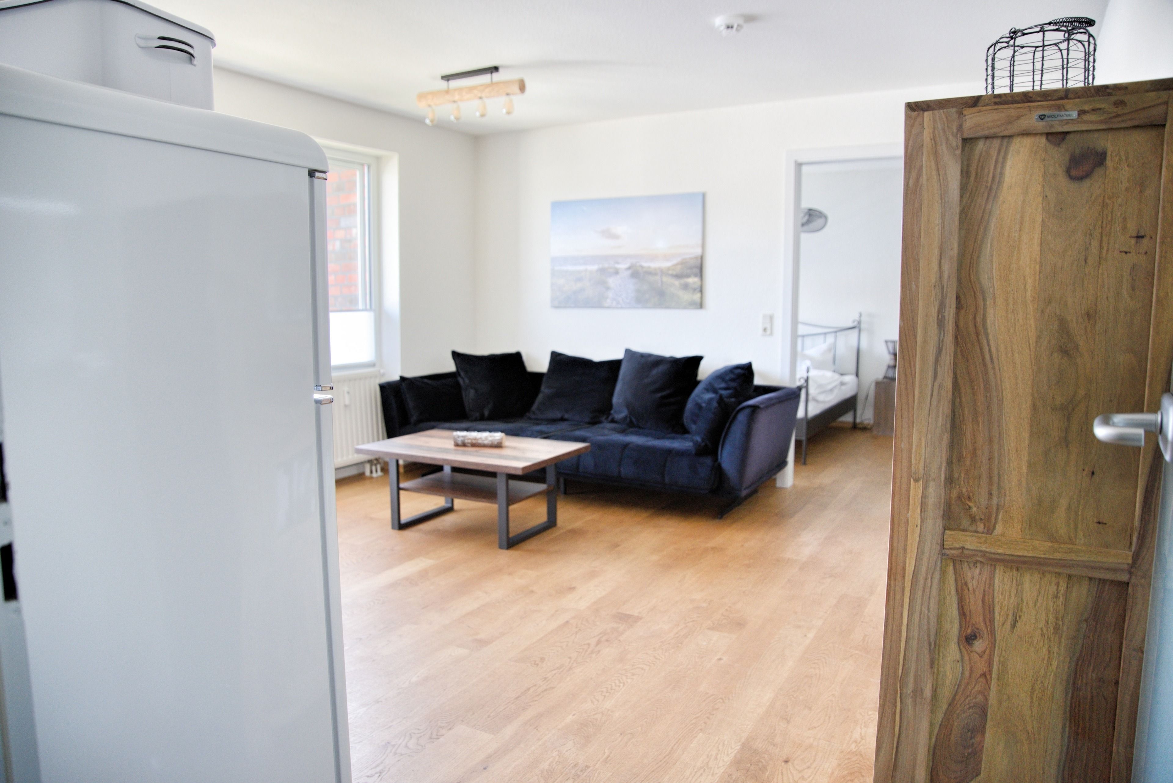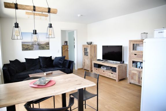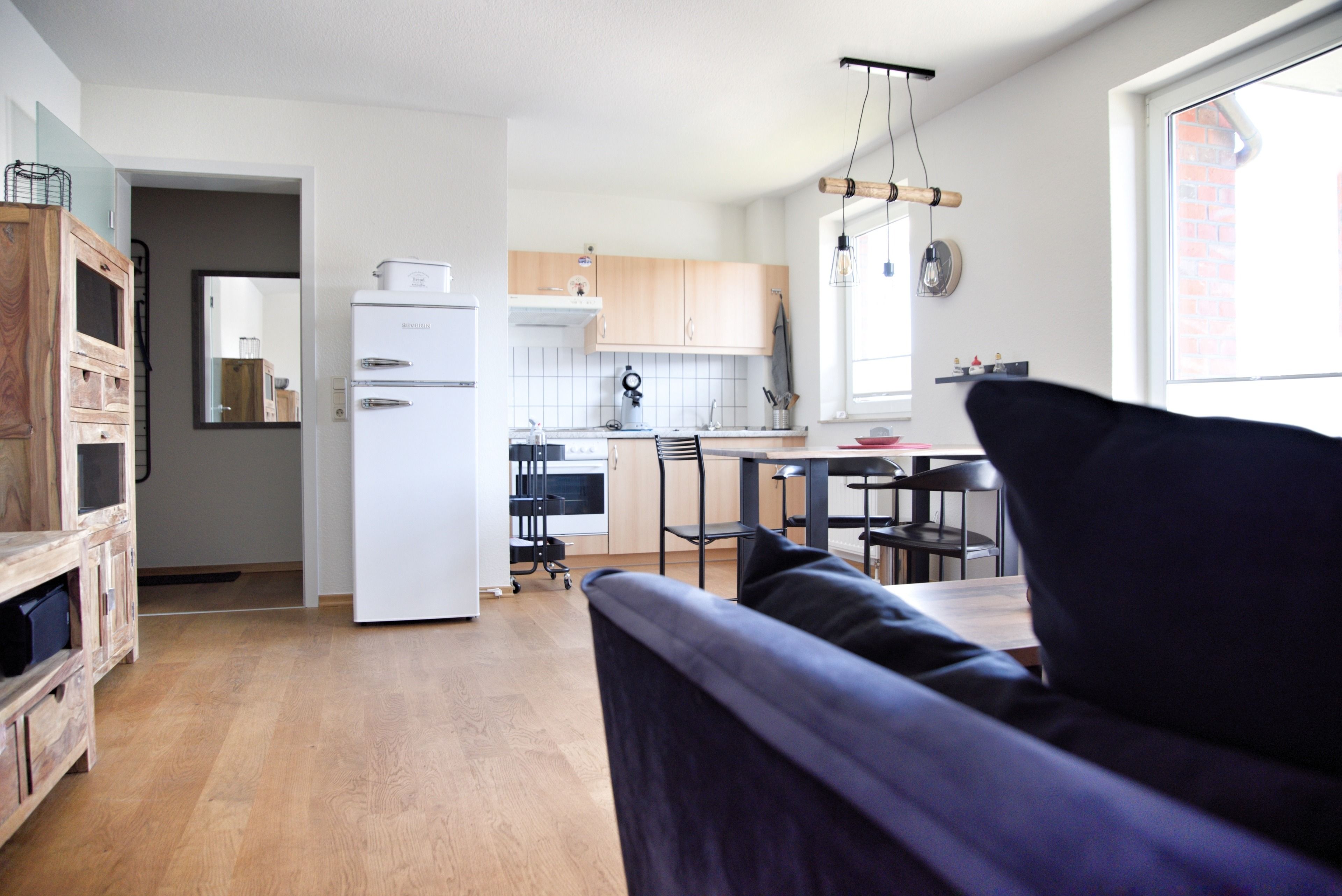 Die Wohnküche ist zum Wohnzimmer hin offen, was den Raum großzügiger erscheinen lässt. Bestandteile sind unter anderem ein Kochfeld, einen Backofen, viel Geschirr sowie eine Kühl- und Gefrierkombination. In Ihrem Schlafzimmer befindet sich ein Doppelbett. Nachtische, Leselampen und Garderoben möchten hier von Ihnen genutzt werden. Ihr Flur beherbergt eine Flurgarderobe und einen Spiegel. Das Appartement Bora liegt im ersten Obergeschoss des Hauses Störtebeker, im Eingang 2. In unmittelbarer Nähe dieses Appartements befinden sich weitere Ferienappartements unserer Gesellschaft. Eine gemeinsame Anmietung ist hier sehr gut möglich.