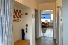 Unsere Ferienwohnung Atlantischer Hof 29 (ca.55m) ist bequem per Aufzug zum 5. Stock zu erreichen und bietet einen phenomenalen Ausblick auf die Nordsee mit ihren Halligen, den kreisenden Möwen und den Fähren.