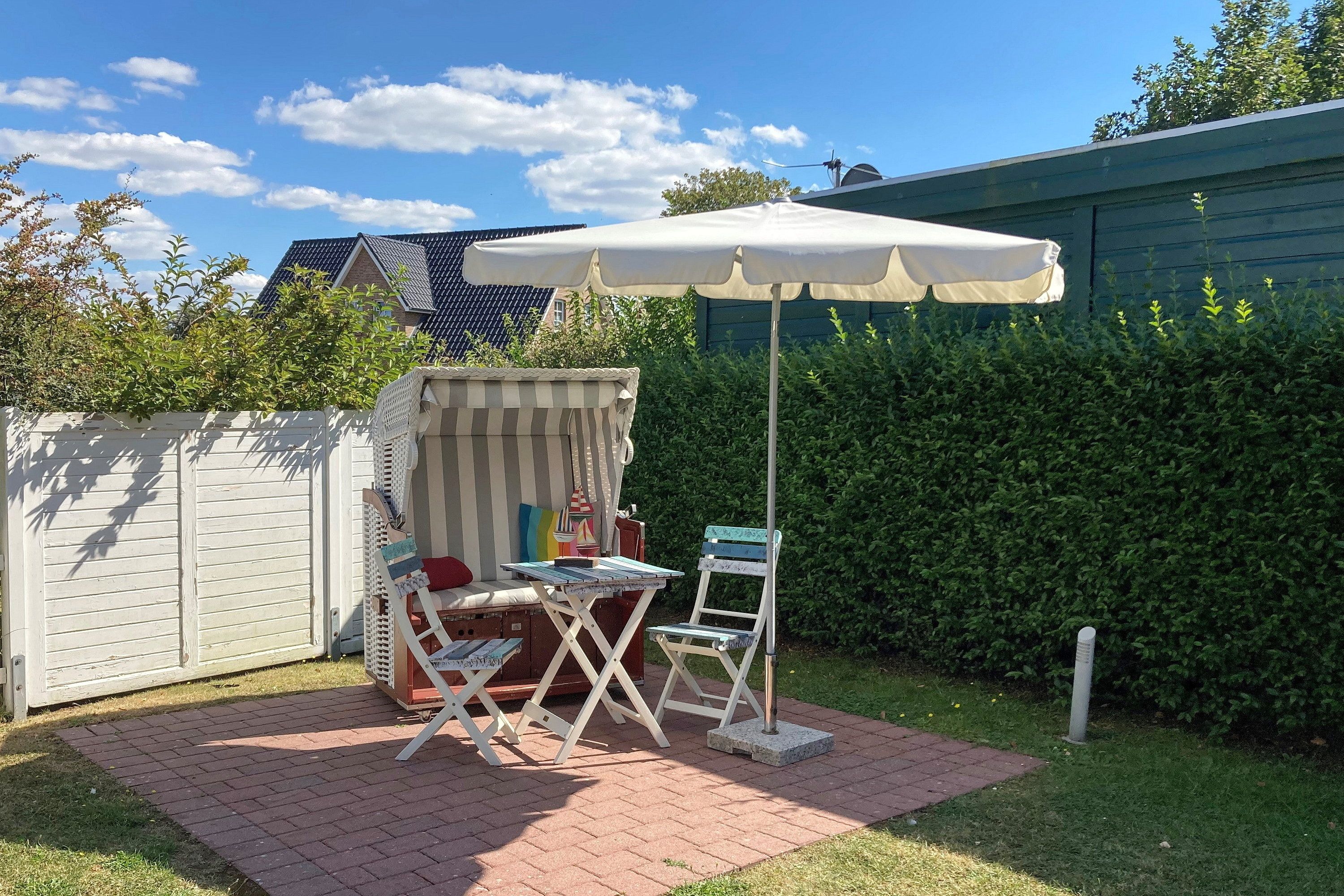 Umgeben von Grün, in mitten eines schönen Gartens mit Spielgeräten steht das Haus Friesenstern mit 2 Wohnungen. Über kurze Wege erreichen Sie die Innenstadt, die Strandpromenade mit ihren vielen Cafés und Boutiquen sowie den Strand. Die Wohnung 2 im Anbau zeichnet sich durch einen hellen Flur aus von dem man ins Bad gelangt. Dort befindet sich auch eine Waschmaschine. Weiter gelangt man in einen modernen Wohn-Essbereich mit einer ebenfalls sehr gut ausgestatteten Küchenzeile und einem direkten Zugang zur eigenen Terrasse und dem Garten. Im Obergeschoss befindet sich ein Schlafzimmer mit Doppelbett(1,80x2,00m) sowie einem Alkovenbett (90 x 190cm) für ein Kind. Auf dem großen Waldspielplatz Löwenhöhle oder im Friesenmuseum gleich in der Nachbarschaft finden Klein und Groß Spaß und Interessantes über die grüne Insel. Haupthaus und Anbau sind sehr kinderfreundlich gestaltet und laden zu einem entspannten Urlaub auf unserer grünen Insel ein.