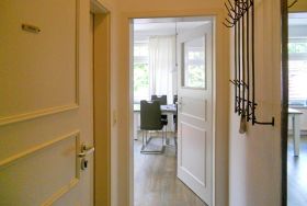 Das Galeriehaus ist ein historisches Gebäude von Wyk, welches außen immer noch den einstigen Charme von vergangenen Zeiten aufweist, doch innerhalb der Fassade umgebaut und renoviert wurde. Jetzt befinden sich im Galeriehaus 4 Wohnungen für je 2 Personen. Die zentrale Lage zur Innenstadt, dem Strand und der Nordsee, dem Meerwasserwellenbad Aqua Föhr und zu den Einkaufläden machen unsere Wohnungen im Galeriehaus sehr beliebt. Unsere kleine, hübsche Obergeschoßwohnung Monet eignet sich mit 40 qm ideal für 2 Personen. Der offene Wohnraum mit integrierter Küchenzeile und Essplatz ist hell und freundlich gestaltet. Die großzügige Essecke bietet Platz für ein reichhaltiges Frühstück am Morgen und abends lädt die bequeme Couch dazu ein, gemeinsam einen Film zu schauen oder ein gutes Buch zu lesen. Die kleine Küchenzeile ist gut ausgestattet und verfügt über einen Ceranfeldherd mit Backofen, einen Kühlschrank mit Gefrierfach; Wasserkocher und Kaffeemaschine sind natürlich ebenfalls vorhanden. Das Badezimmer ist funktional hergerichtet mit Dusche, Handtuchheizung, Schminkspiegel und Föhn. Das Schlafzimmer, ausgestattet mit Boxspringbett und geräumigem Kleiderschrank, ist nach hinten hinaus gelegen und lädt zu schönen Träumen ein.