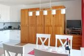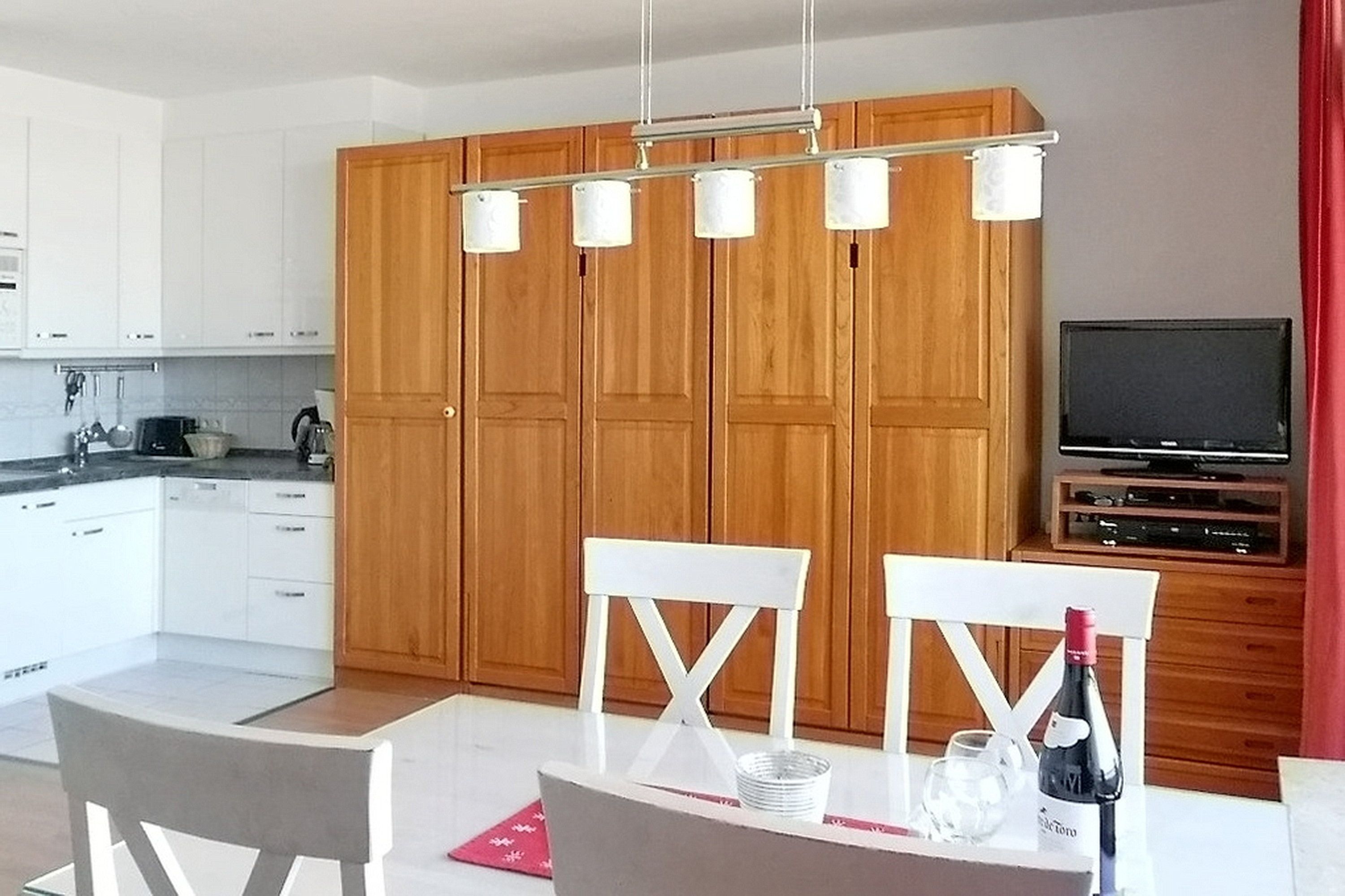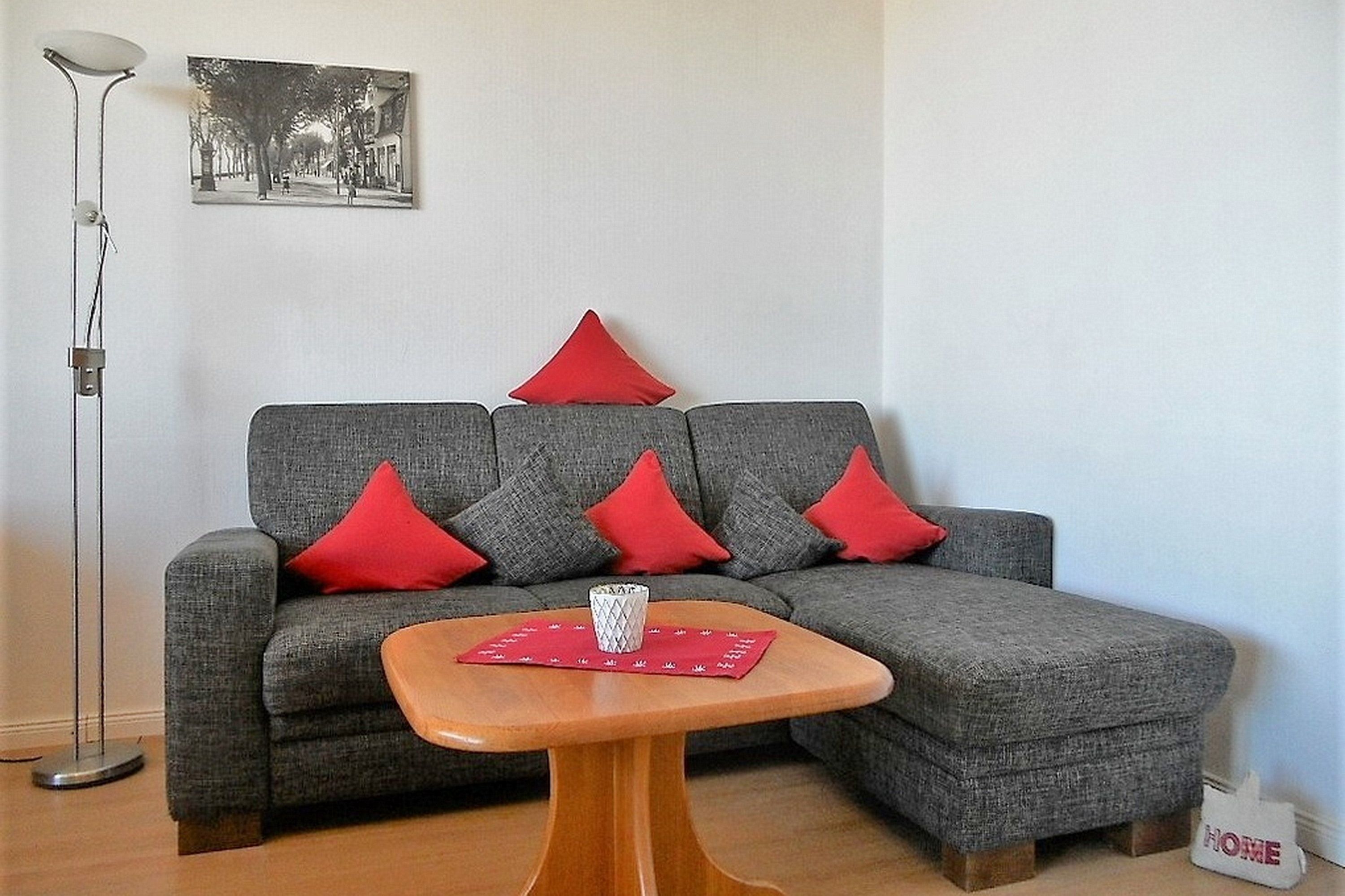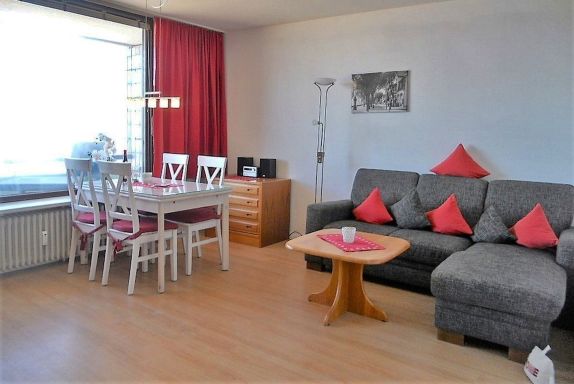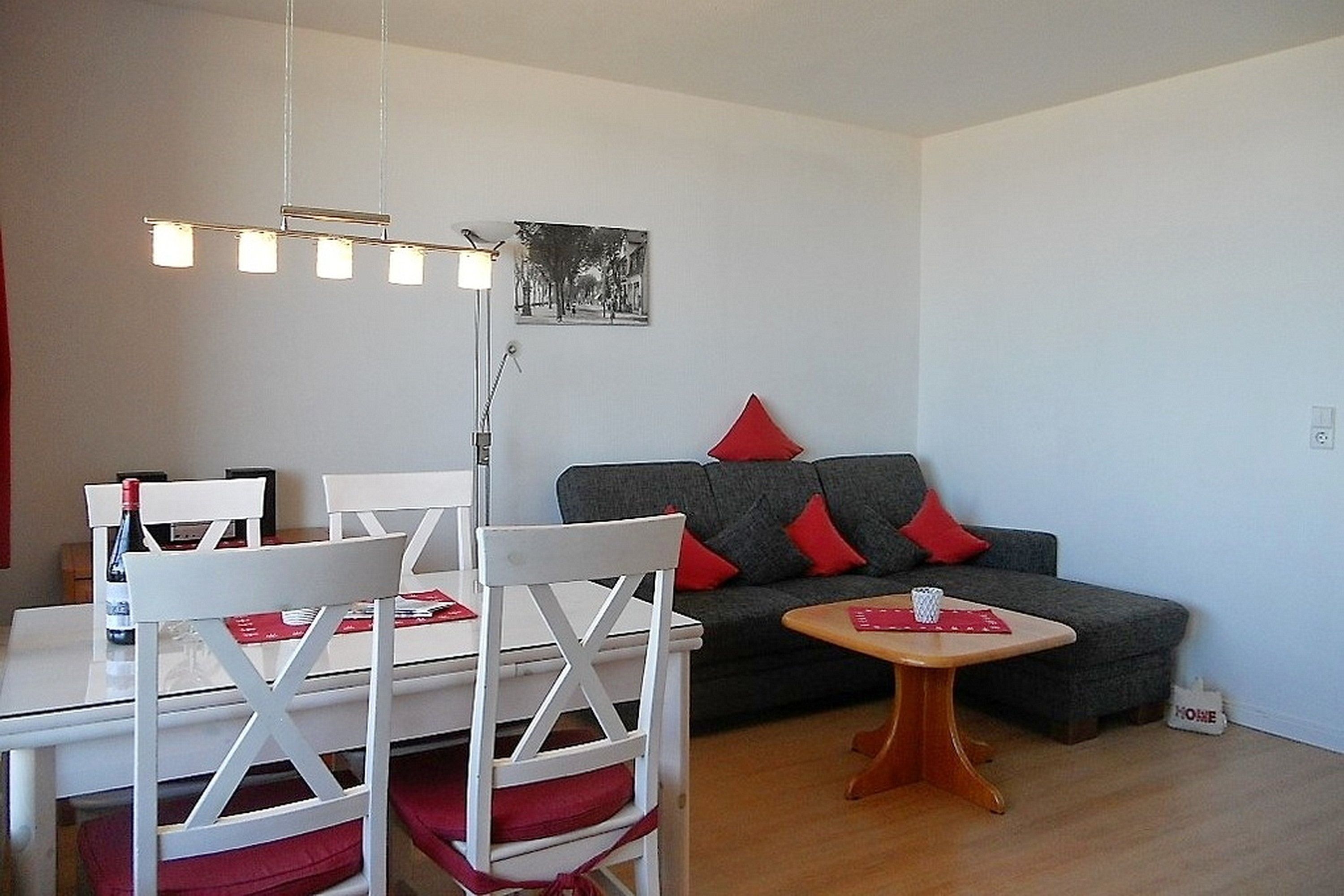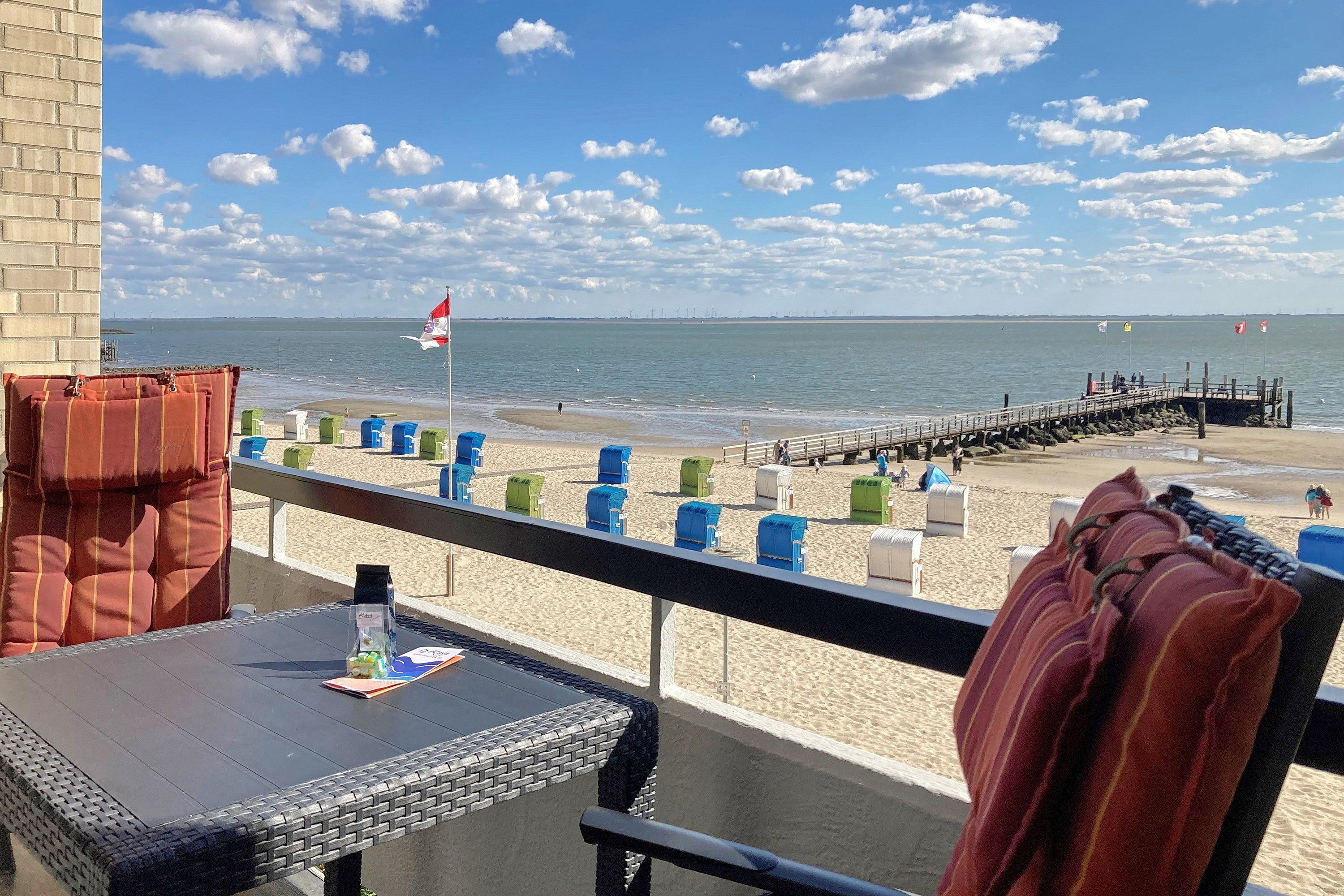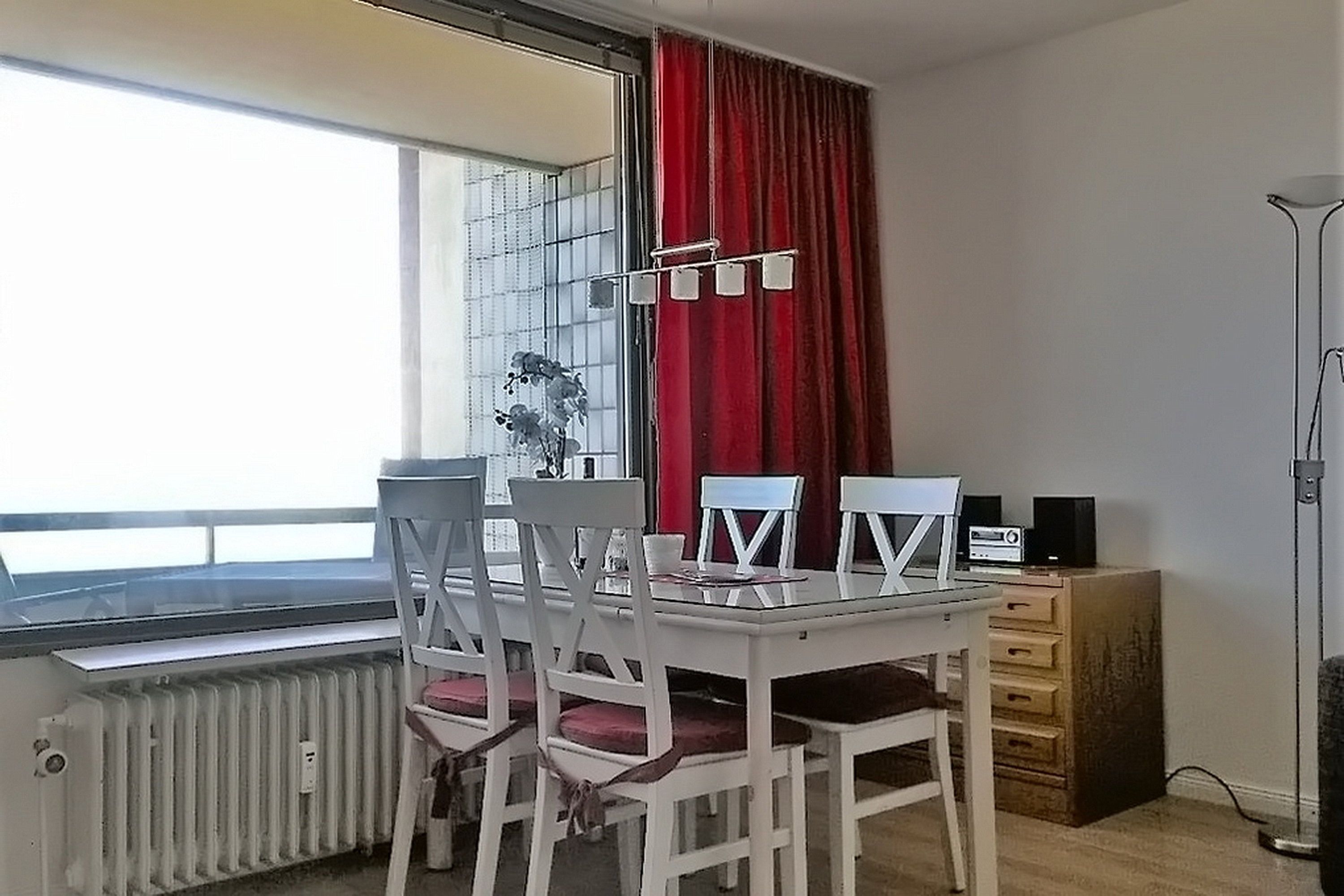 Unsere Irma 12 mit ca. 42qm ist eine liebevoll eingerichtete Ferienwohnung im ersten Stock des zentral gelegenen Hauses Irma und ist sowohl per Treppe als auch mit dem Aufzug ( 4 Stufen bis zum Aufzug) erreichbar. Fühlen Sie sich sogleich Willkommen in unserem gepflegten Domizil, welches traumhafte Urlaubstage für 2 bis max. 4 Personen verspricht. Dank der großzügigen Fensterfront, welche sich über die gesamte Länge des Wohnbereiches erstreckt, ist das Wohnzimmer lichtdurchflutet und bietet Ihnen einen traumhaften Blick auf den Strand, das Meer und die Halligen. Natürlich verfügt die Wohnung über einen schönen Essplatz direkt am Fenster und eine gemütliche Couch sowie W-Lan, eine Stereoanlage, einen Flachbild- TV und einen DVD- Player. Außerdem befinden sich hier 2 Schrankbetten (90x200 cm), die zu erholsamen Nächten einladen. Die offene Küche mit Ceranfeldherd, einer Mikrowelle mit Grillfunktion und einem Geschirrspüler schließt direkt an den Wohnbereich an und natürlich sind eine Wasserkocher, Toaster, eine Senseo Duo (Kaffeemaschine, die für Pads und Filterkaffee genutzt werden kann) ausreichend Geschirr vorhanden. Vom Flur aus gelangen Sie in das kleine, hellgeflieste Bad mit Dusche und Handtuchheizkörper sowie in das Schlafzimmer mit zwei weißen, hochwertigen Einzelbetten (90 x 190 cm) mit verstellbarem Lattenrosten und einem geräumigen weißen Kleiderschrank im neuen Glanz erstrahlt. Im Keller des Hauses stehen Waschmaschine und Trockner gegen eine geringe Gebühr zur gemeinschaftlichen Nutzung zur Verfügung. Vom Keller aus gibt es auch einen direkten Zugang zum Strand (im Frühling, Sommer und Herbst.) Erleben Sie den Strand, das Schauspiel von Ebbe und Flut sowie die frische Nordseeluft hautnah vom überdachten Balkon aus und genießen Sie eine phänomenale Aussicht bereits beim Morgenkaffee..