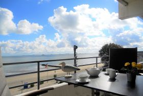 Im ruhigeren Abschnitt des belebten Sandwalls befindet sich das Haus Klaar Kiming direkt vor der Strandpromenade. In wenigen Minuten sind Sie mitten im Geschehen und können die vielen freundlichen Cafés und Restaurants besuchen, in den kleinen Geschäften bummeln gehen oder sich im Aqua Föhr vergnügen. Im Haus befindet sich eine Waschmaschine und Trockner, die gegen eine geringe Gebühr zur gemeinschaftlichen Nutzung bereitsteht. Vom Keller aus gelangen Sie durch einen zweiten Eingang (von Ostern bis Ende Oktober wetterabhängig) auch direkt an die Promenade und den Strand. Die Wohnungen bieten hier einen herrlichen Blick über das Meer und Sie können die Fähren, die Möwen und Ebbe und Flut vom Balkon oder der Terrasse aus beobachten. Unsere Wohnung 4 a ist in dem gepflegten Appartementhaus Haus Klaar Kiming im Sandwall 31, direkt am Strand. Die Wohnung hat eine Größe von 55 m und liegt in der vierten Etage, die bequem auch mit dem Fahrstuhl zu erreichen ist.